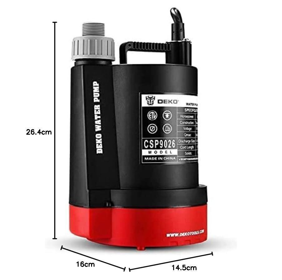 【強力な汚水ポンプ】DEKO家庭用水中ポンプはプロ仕様の300W強力モーターを採用し、最大吐出量は9275L/H、最大揚程は8.5mに達し、素早く排水できます。また、また、排水ポンプは3㎜までの汚れものを通過できるので、汚水ポンプとして大活躍します。菜園・花壇の散水や池・水槽の水の入れ替えにピッタリ!