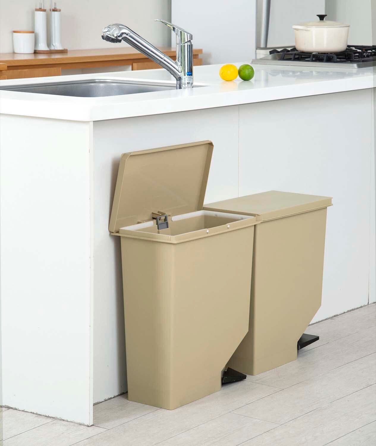 縦置き、横置き、置く方向を選べるスイッチペダル式ペール<br>キッチンやダイニングのレイアウトに合わせて設置できる