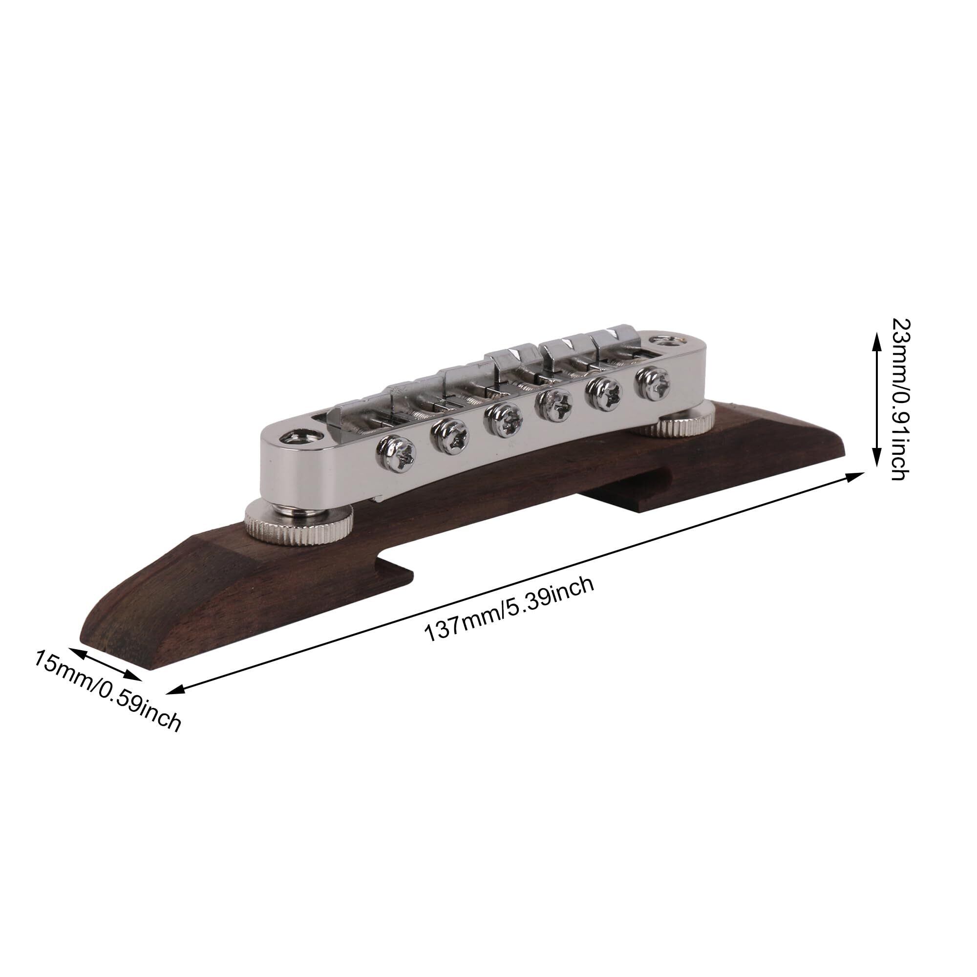 Yibuy 15ミリメートル幅さ クローム ローズウッド ジャズ・アコースティックギター・ブリッジ ローラーサドル付き 耐久性
