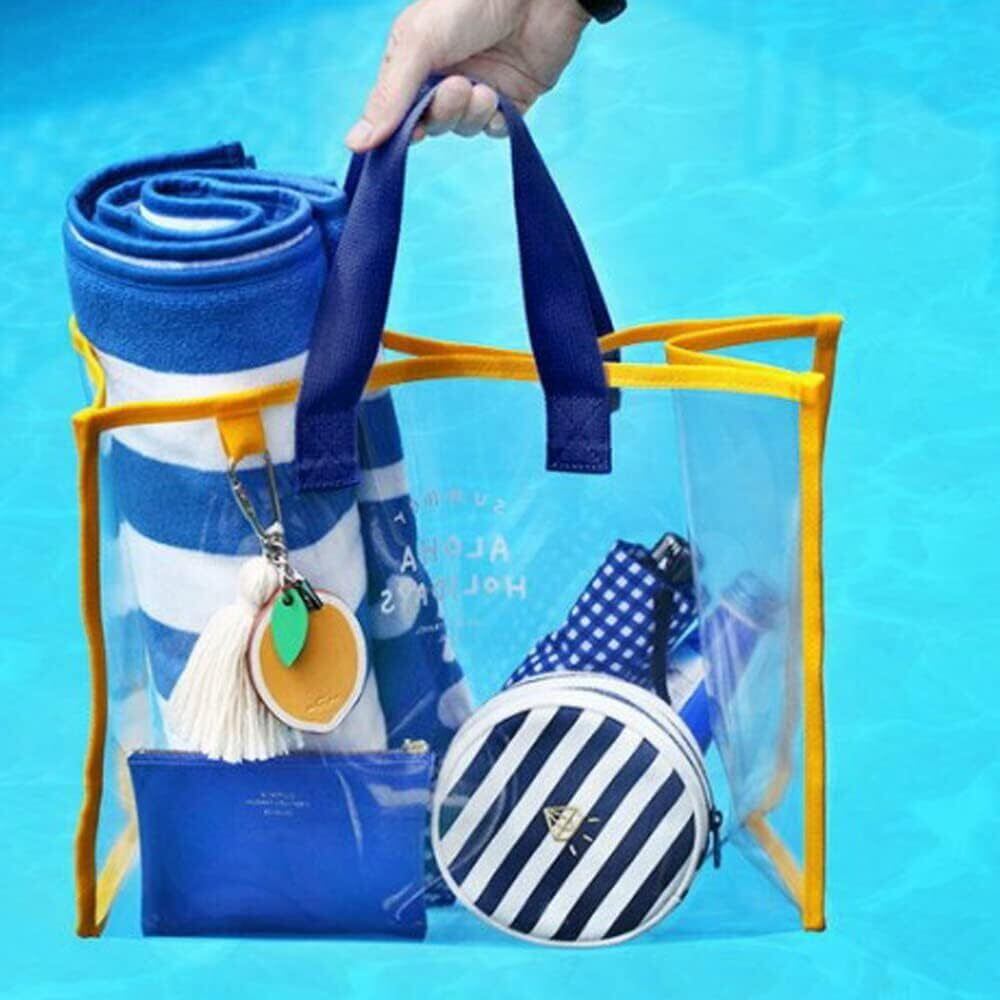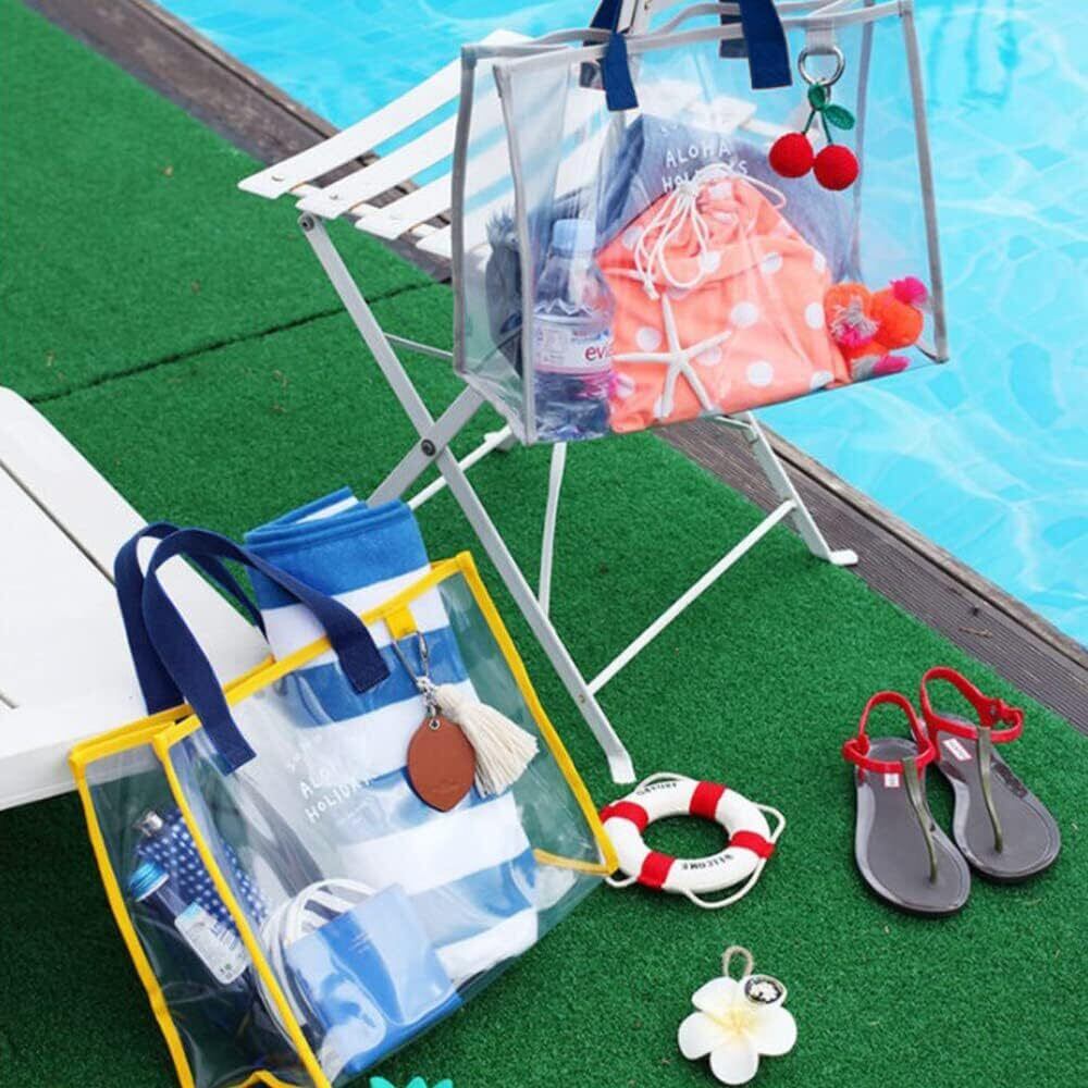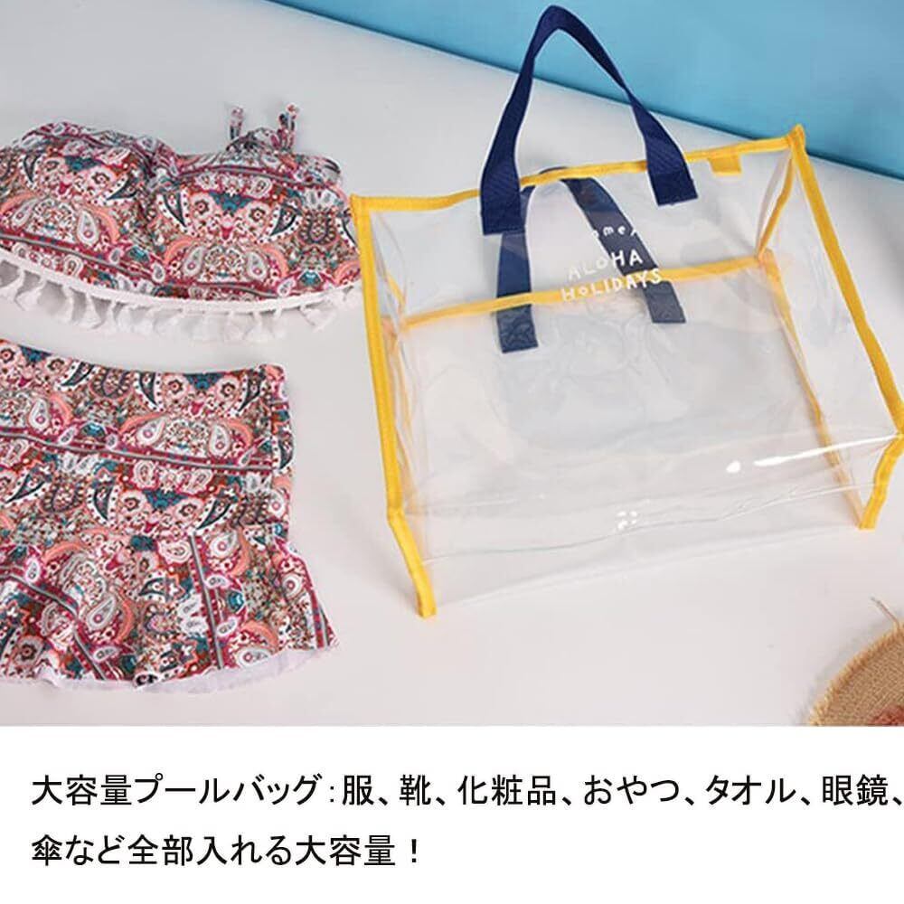 プールバッグ ビニールバッグ 透明 ビーチバッグ 33x27x13cm ウォータープルーフバッグ アウトドア用 透明バッグ 大容量 手提げバッグ 旅行/温泉/水泳用