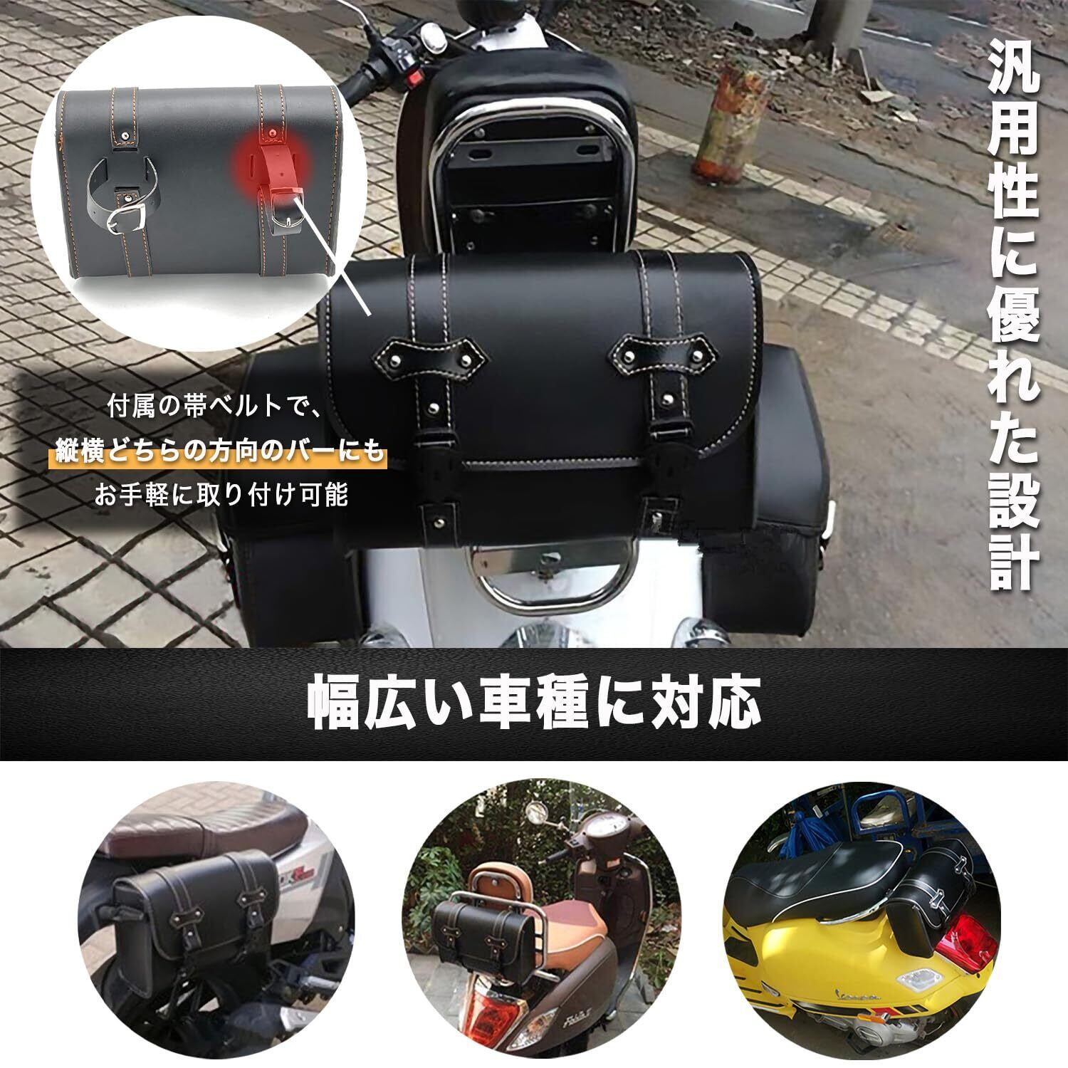 karim サイドバッグ バイク用 バッグ ツーリング 小物入れ 工具入れ ツール ポーチ 鞄 カバン 取り付け 固定 防水 PUレザー 黒 アメリカン 大容量 (ブラック)