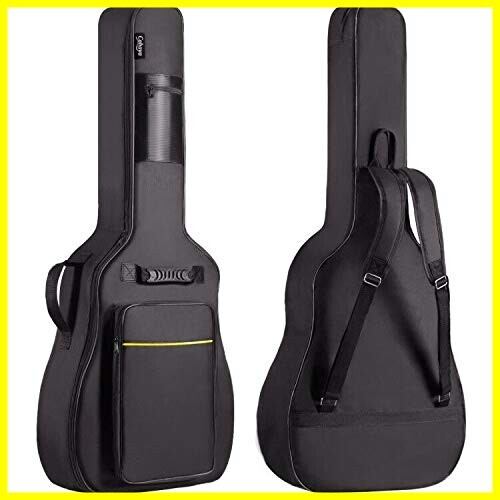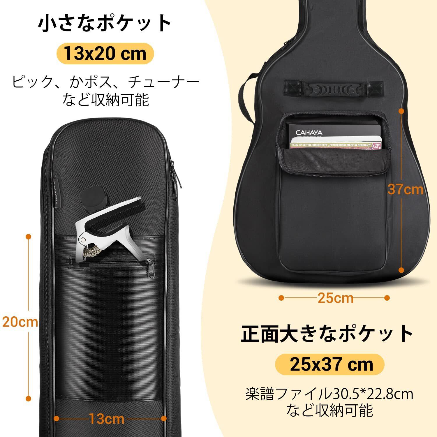 CAHAYA 【9mmスポンジ】 ギターケース アコースティックギター ギグバッグ 軽量 ソフト ケース フォークギターバッグ 大容量ポケット付き 頑丈 耐久 全体 改善 リュック型 肩掛け 手提げ (黄色いストライプ付き) CY0152