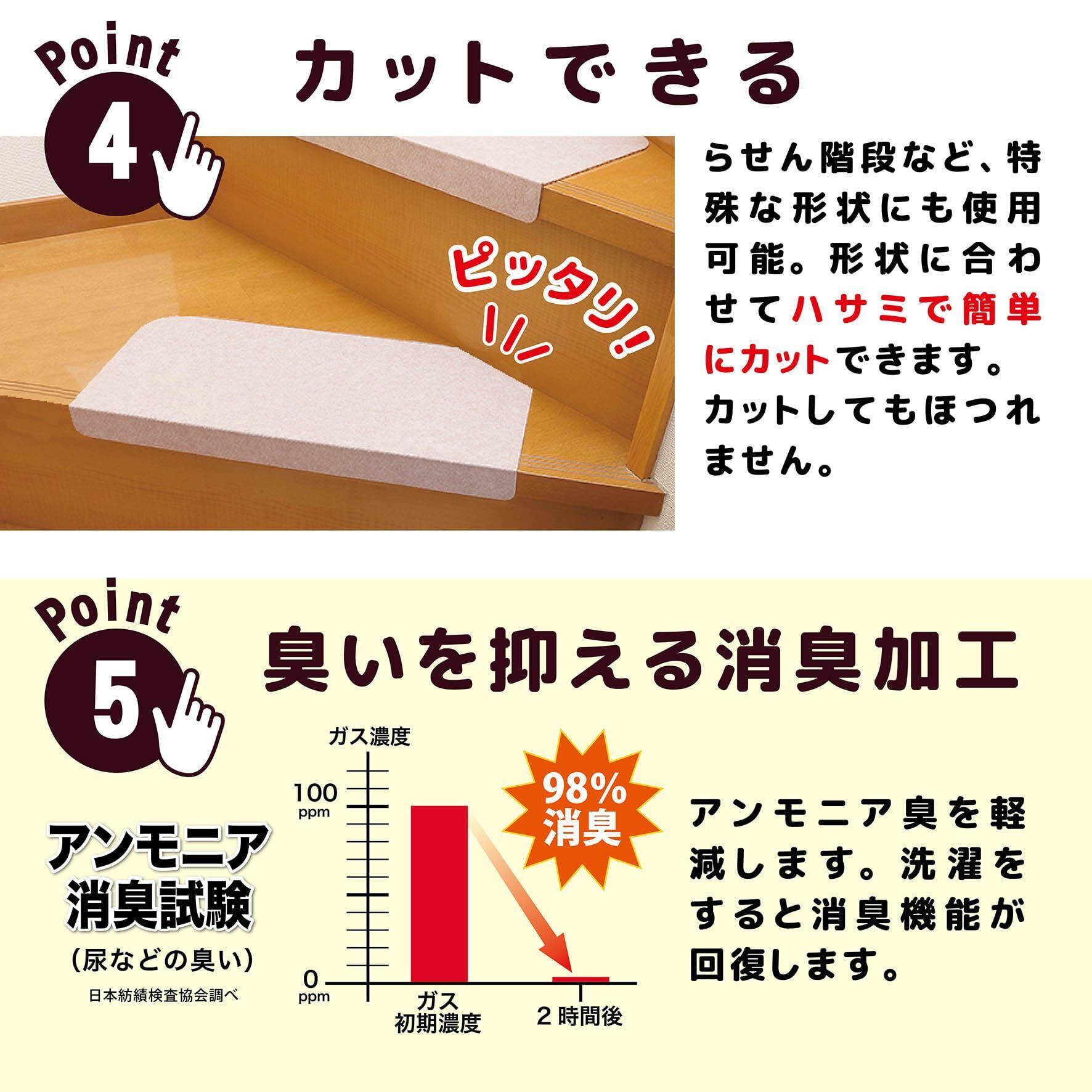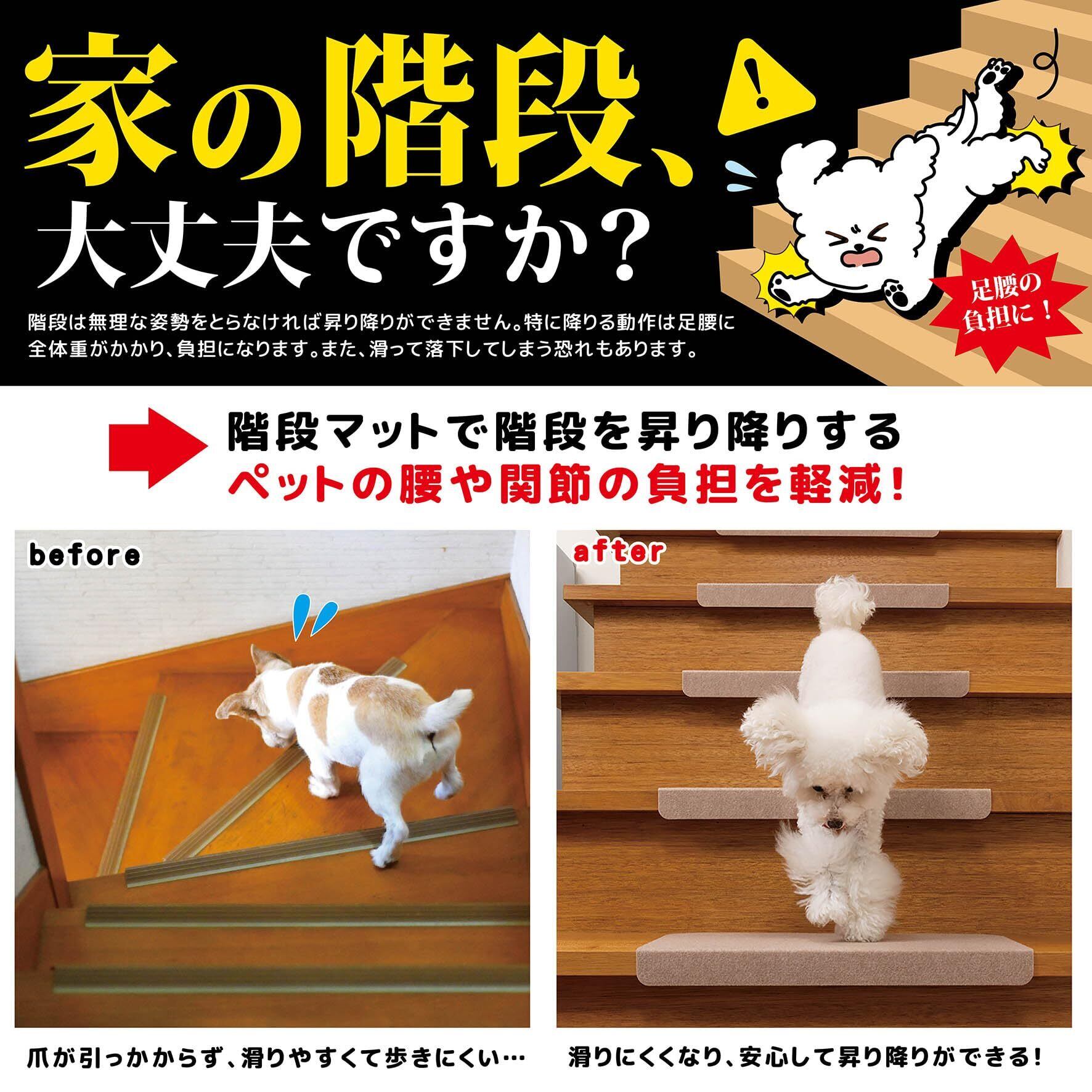 サンコー おくだけ吸着 獣医師推奨 折り曲げ付 階段マット 15枚入 ベージュ ペット用 犬 猫 すべり止め カーペット 【日本製 撥水 消臭 洗える ハサミでカット可】 KD-54