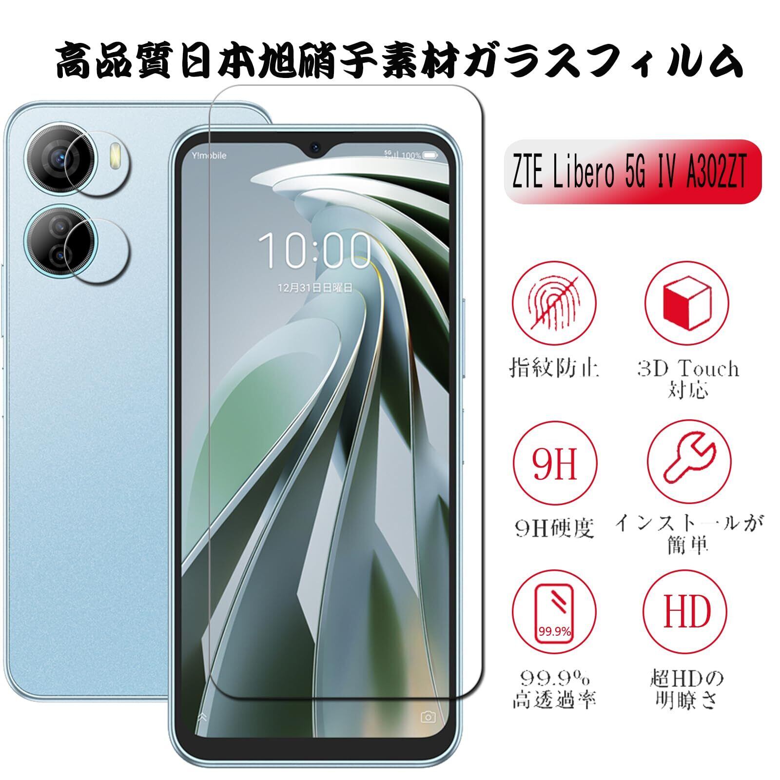 【2+2枚セッ】ZTE Libero 5G IV A302ZT 用のガラスフィルム(2枚)+カメラフィルム(2枚)zte リベロ 5g iv/nubia Ivy (Z6561J) 用の フイルム 強化液晶保護フィルム ワンタッチ貼付け/気泡ゼロ/ケースと干渉せず/硬度9H/飛散防止/指紋防止