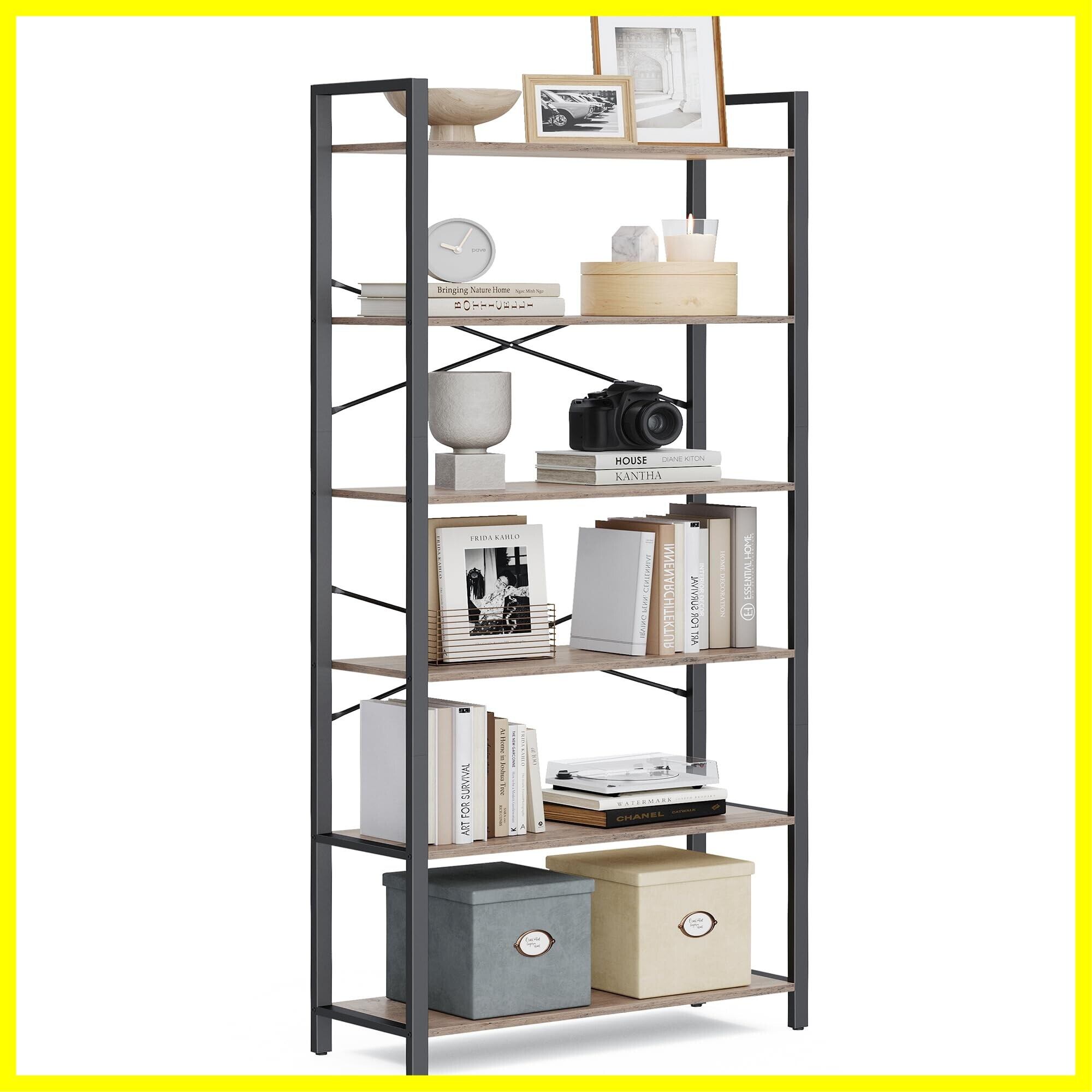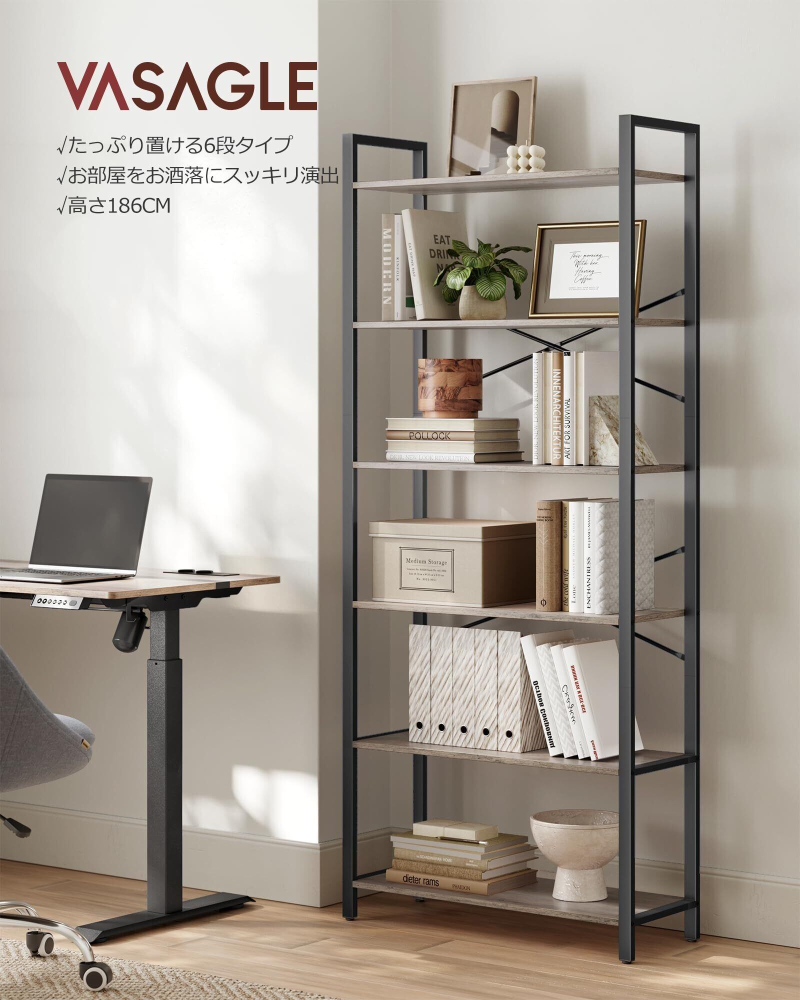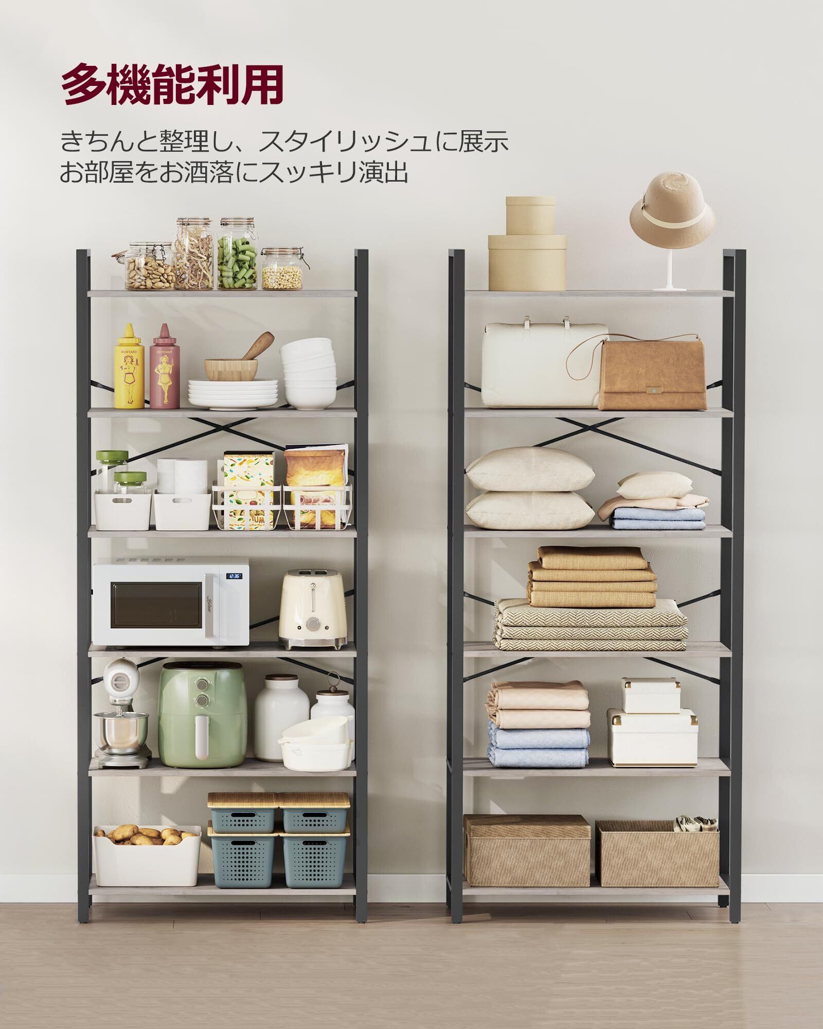 VASAGLE オープンラック 本棚 スチールラック 棚 ラック 6段 収納ラック オープンシェルフ 収納棚 整理棚 シェルフ 薄型 花台 北欧 おしゃれ 木目天板 スチール脚 幅80×奥行30×高さ186CM 組立簡単 木製 LLS082B02V1
