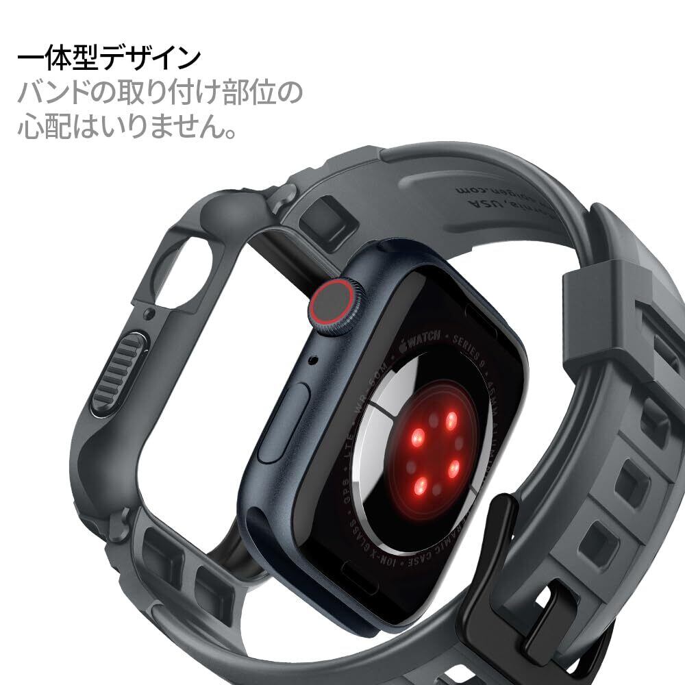 Apple Watch バンド 45mm | 44mm 一体型 ケース カバー 耐衝撃 PC TPU 二重構造 スポーツバンド 落下 衝撃 吸収 耐久性 傷防止 【 Series 9 / 8 / SE 2 /Series 7 / SE/Series 6 / Series 5 / Series 4 対応 】 ラギッド・アーマー プロ ACS07386 (ダーク・グレー)