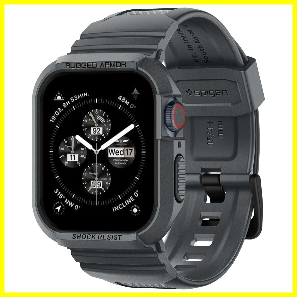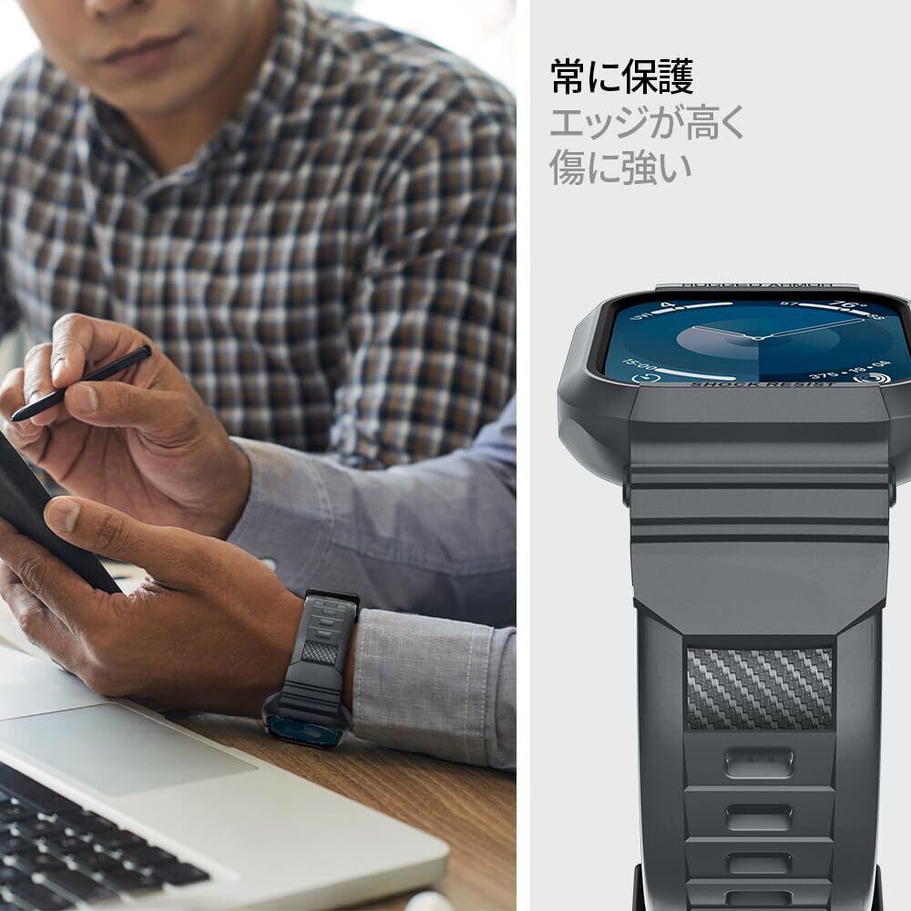 Spigen Apple Watch バンド 一体型 Apple Watch バンド ケース カバー 耐衝撃 PC TPU 二重構造 スポーツバンド 落下 衝撃 吸収 耐久性 傷防止 ラギッド・アーマー・プロ ACS07387 (ダーク・グレー)