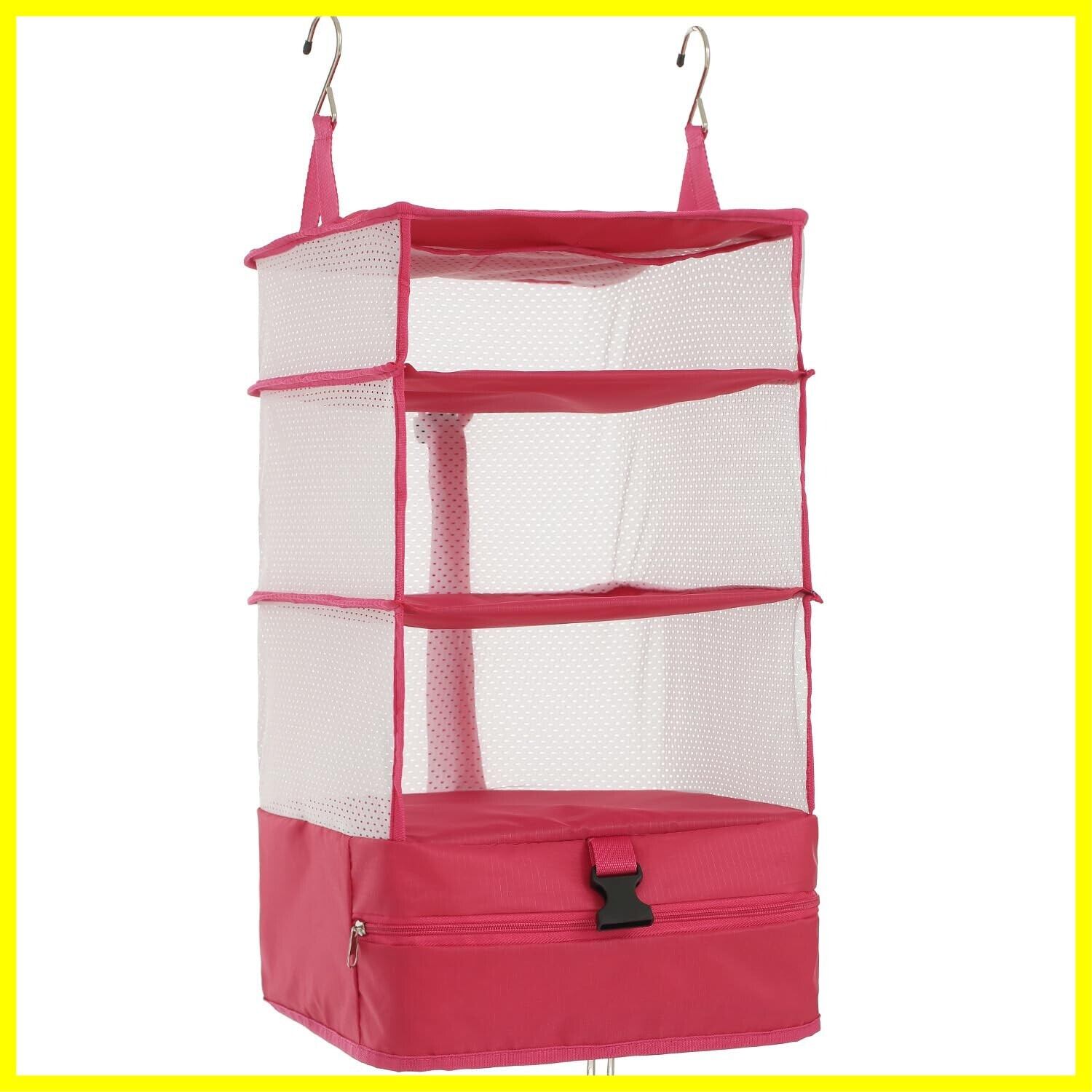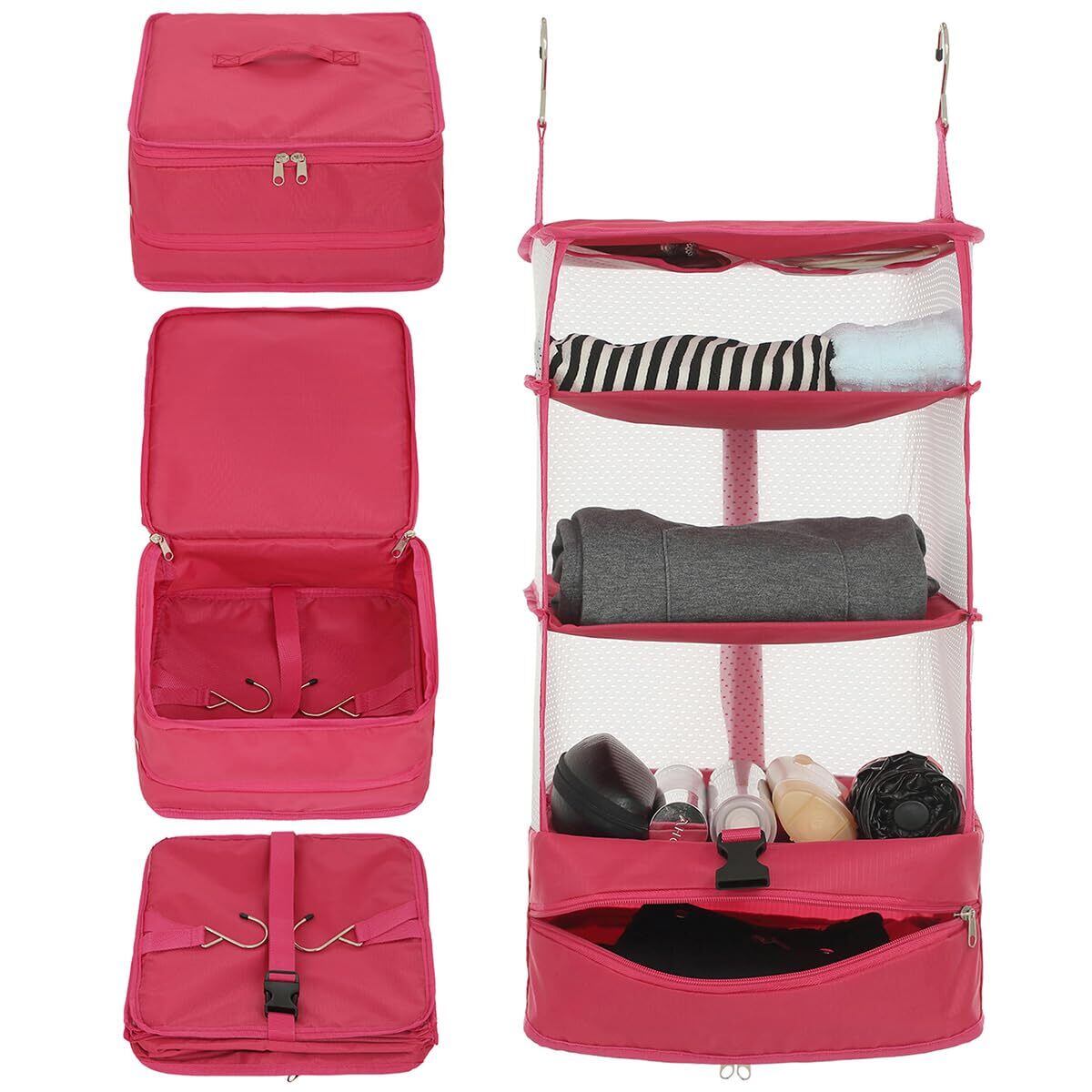 TABITORA(タビトラ) クローゼット吊り下げ収納 インナーバッグ 衣類ラック 収納 旅行 出張 クローゼット 収納ボックス 吊り下げ 省スペース 大容量 衣装ケース 4段 取付簡単 折り畳み式 ローズ L