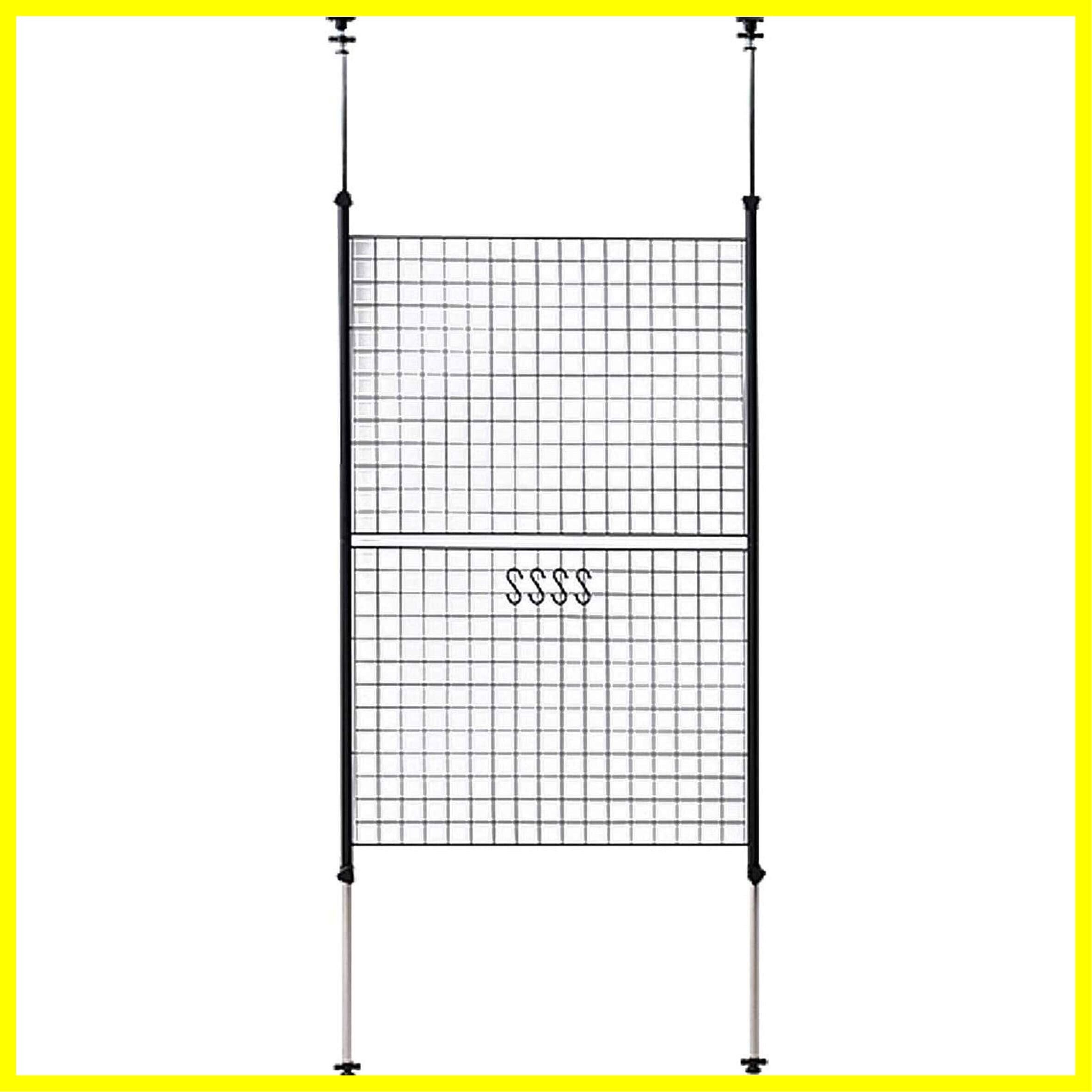 山善(YAMAZEN) 突っ張り パーテーション (ワイヤータイプ) 幅90×奥行5×高さ166.5-295.5cm (フック4個付き) 壁掛け 収納 壁面収納 天井 間仕切り 組立品 ブラック SP-90(MBK)