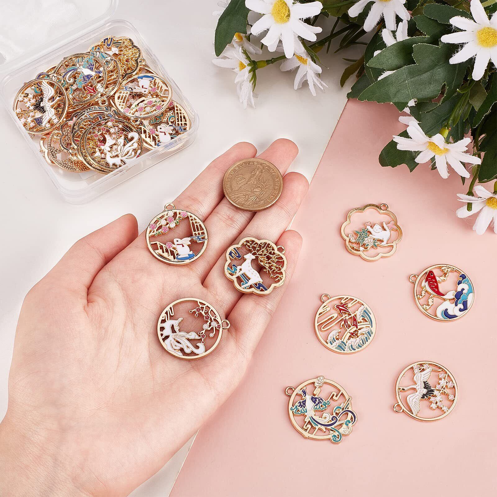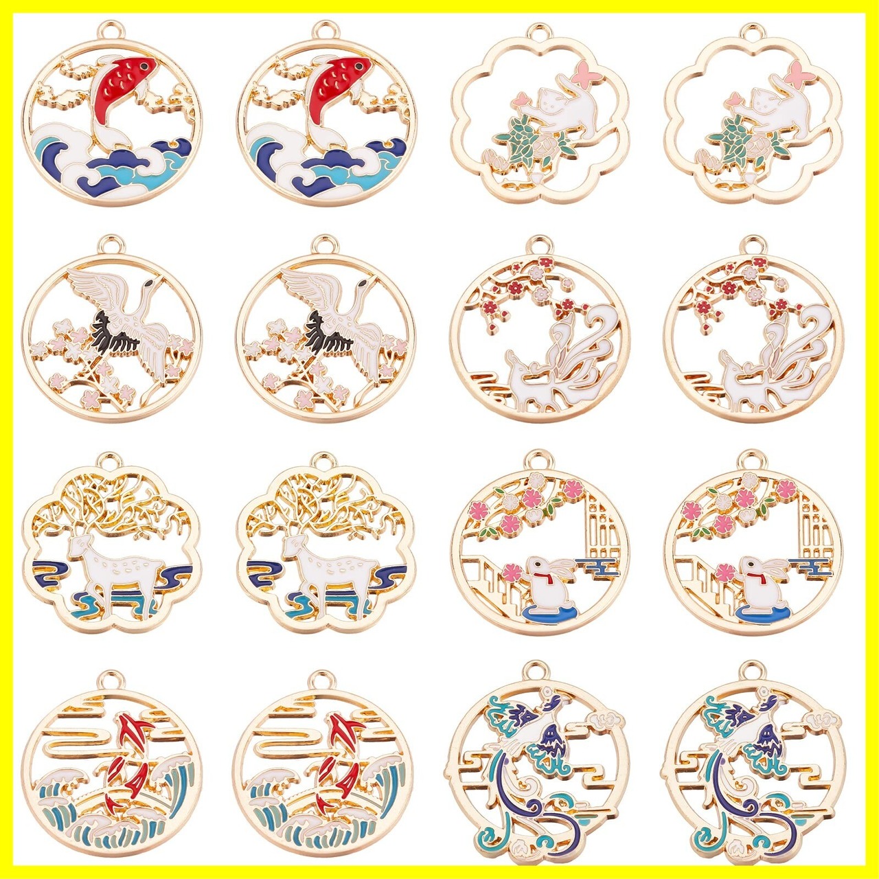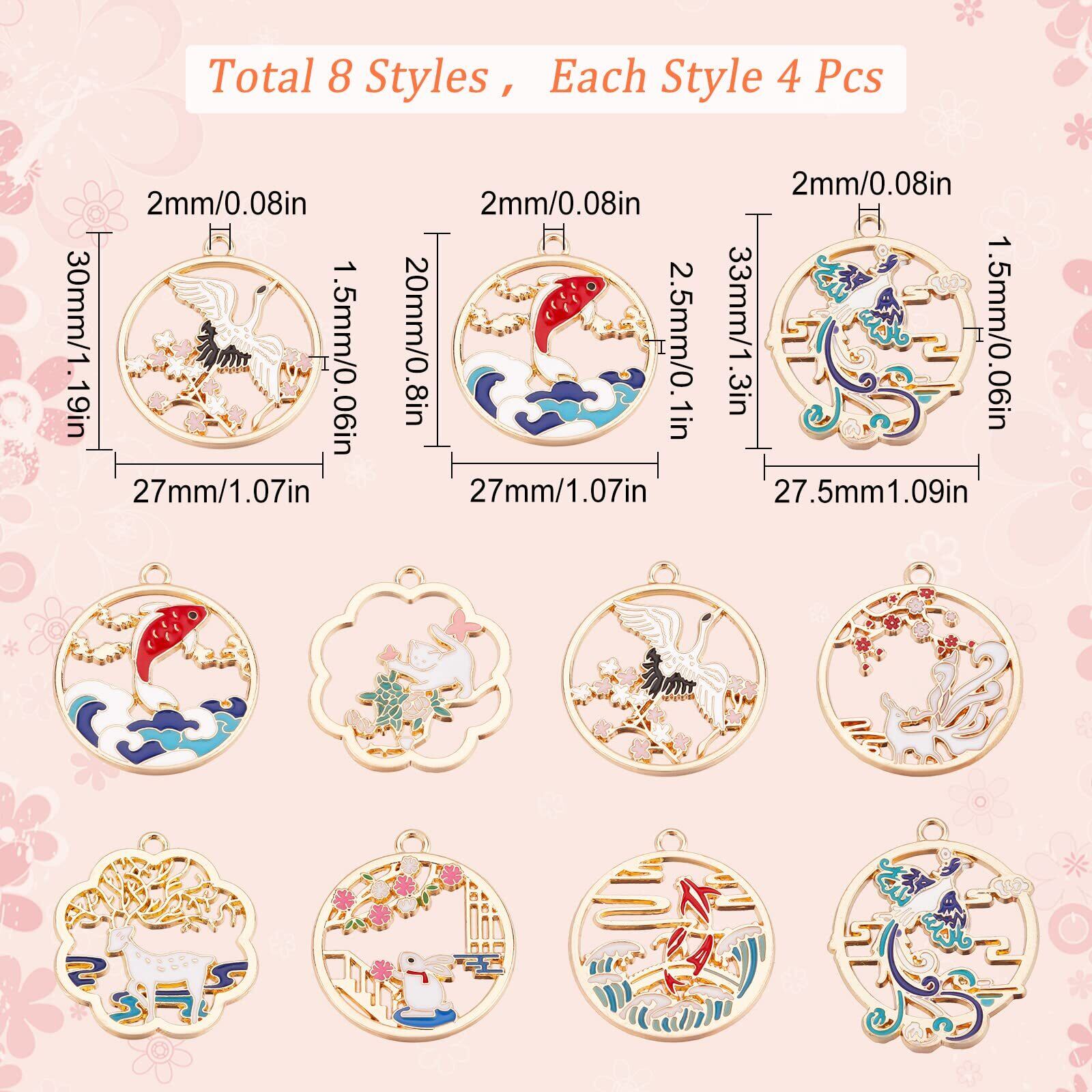 SUNNYCLUE 和風の恋 32個8種 和風 チャーム 鶴 チャーム 鯉 ペンダント 鳳凰 パーツ 猫 ピアス ウサギ イヤリング 鹿 ネックレス キツネ ブレスレット コイ キーホルダー 不死鳥 メタルパーツ ネコ エナメル 金古美 レトロ風 アンチック マカロン エナメル 合金ペンダント チャームパーツ アクセサリー 基礎パーツ ジュエリー作り レディース デコキット クラフト手芸 手作りハンドメイド クリスマス バレンタインデー お正月 キット DIY飾り物