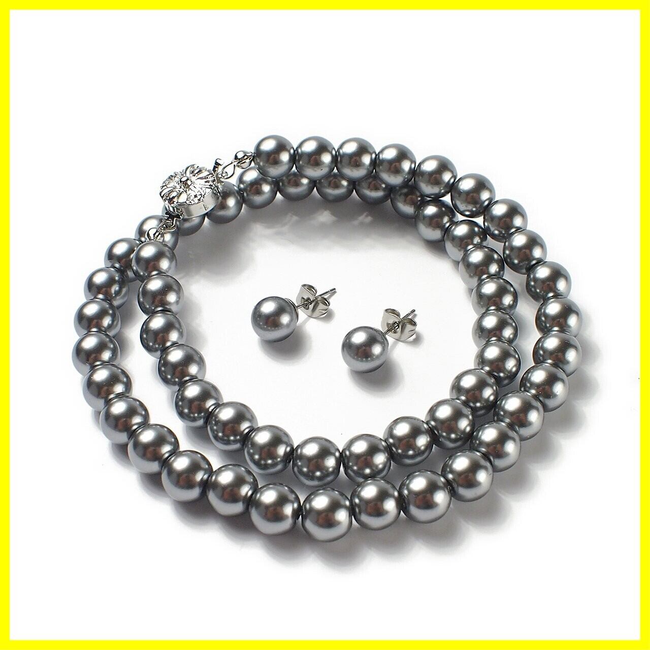 冠婚葬祭 や卒業式 入学式 などフォーマルシーンに欠かせないパールネックレスとピアス/イヤリングのセットです。ホワイトパールと比べて、シックで上品な色となりますので、仏事用などのブラックフォーマルシーンはもちろんのこと、華やかなパーティシーンや普段使いでもお使いいただけます。