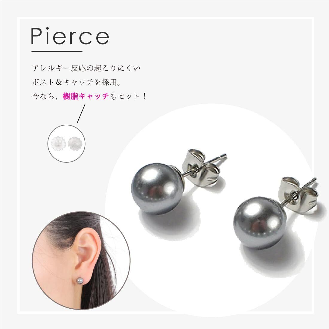 [CRANES COLLECTION] パール ネックレス ピアスイヤリング 2点 セット 日本製 グレー 国産真珠 自社生産 8mm珠 冠婚葬祭 巾着袋付 選べる6サイズ (シルバーブラックカラー)