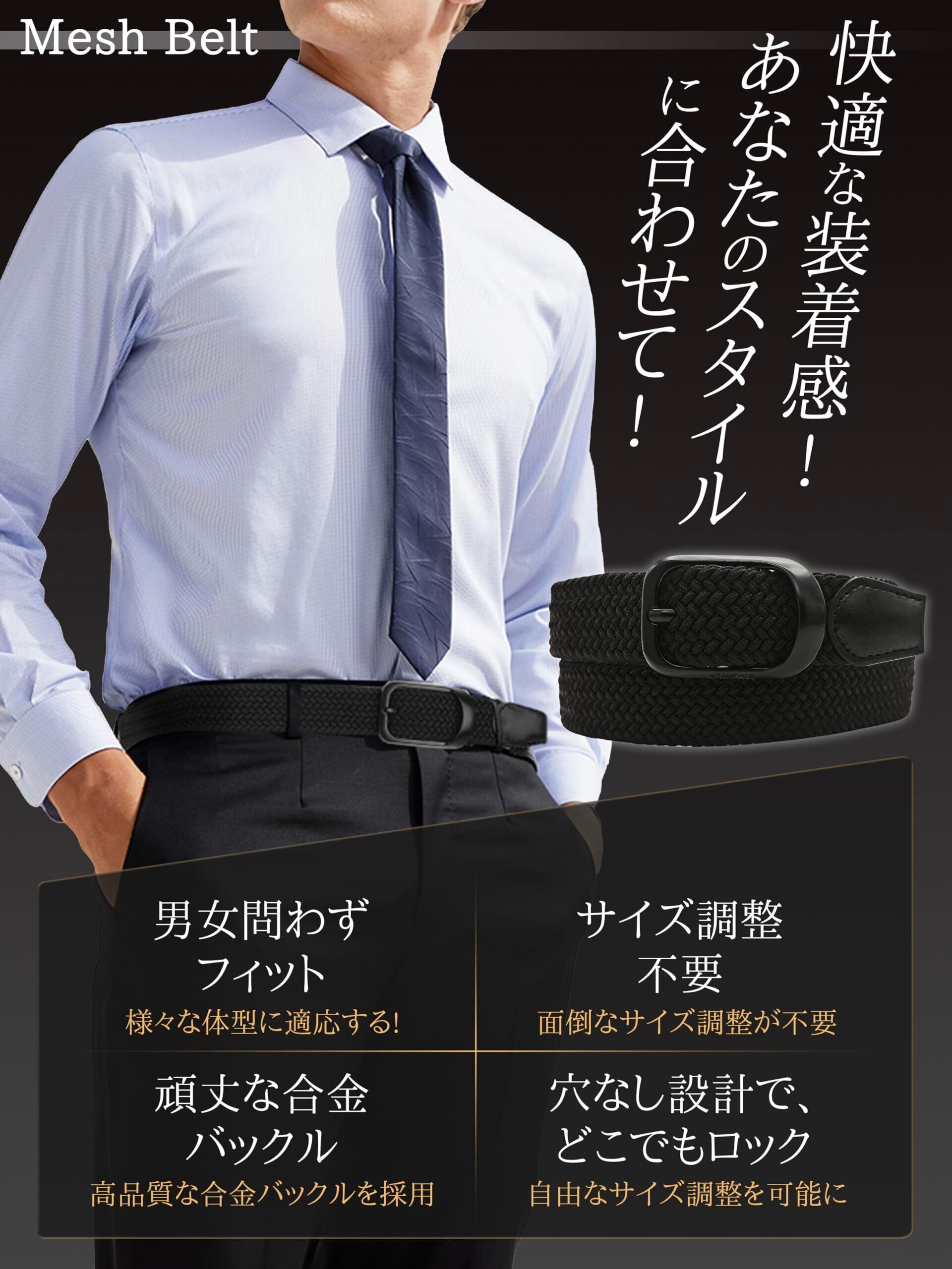 【使い勝手抜群|幅広いシーンに対応】 こちらのメッシュゴムベルトは、ビジネス、会社、通勤、オフィス、出張などのフォーマルシーンはもちろん、普段使いやカジュアルファッション、学生制服、旅行やトラベル、アウトドア、キャンプ、釣り、ゴルフ、スポーツなどあらゆる場面で活躍します。春・夏・秋・冬のオールシーズン対応で、誕生日、父の日、クリスマスなどのプレゼントやギフトにも最適です。