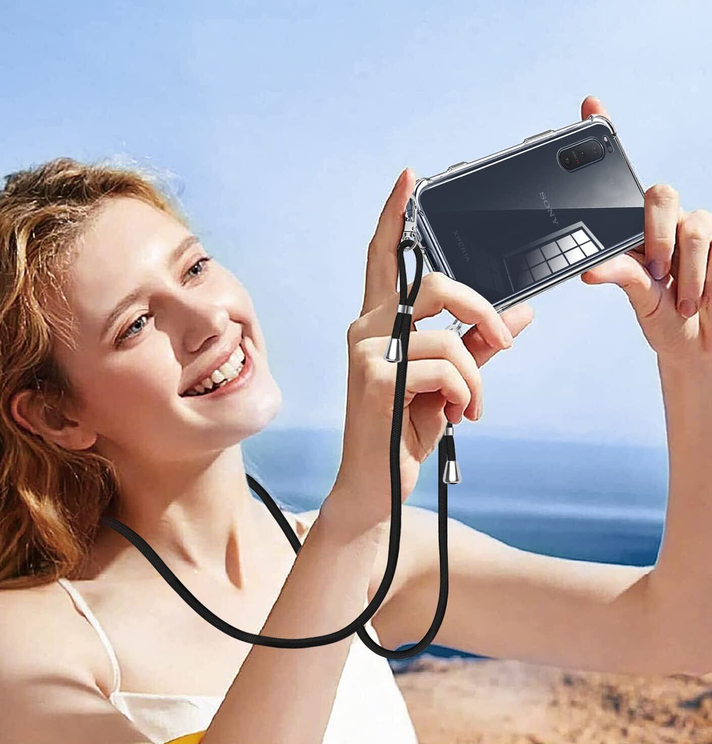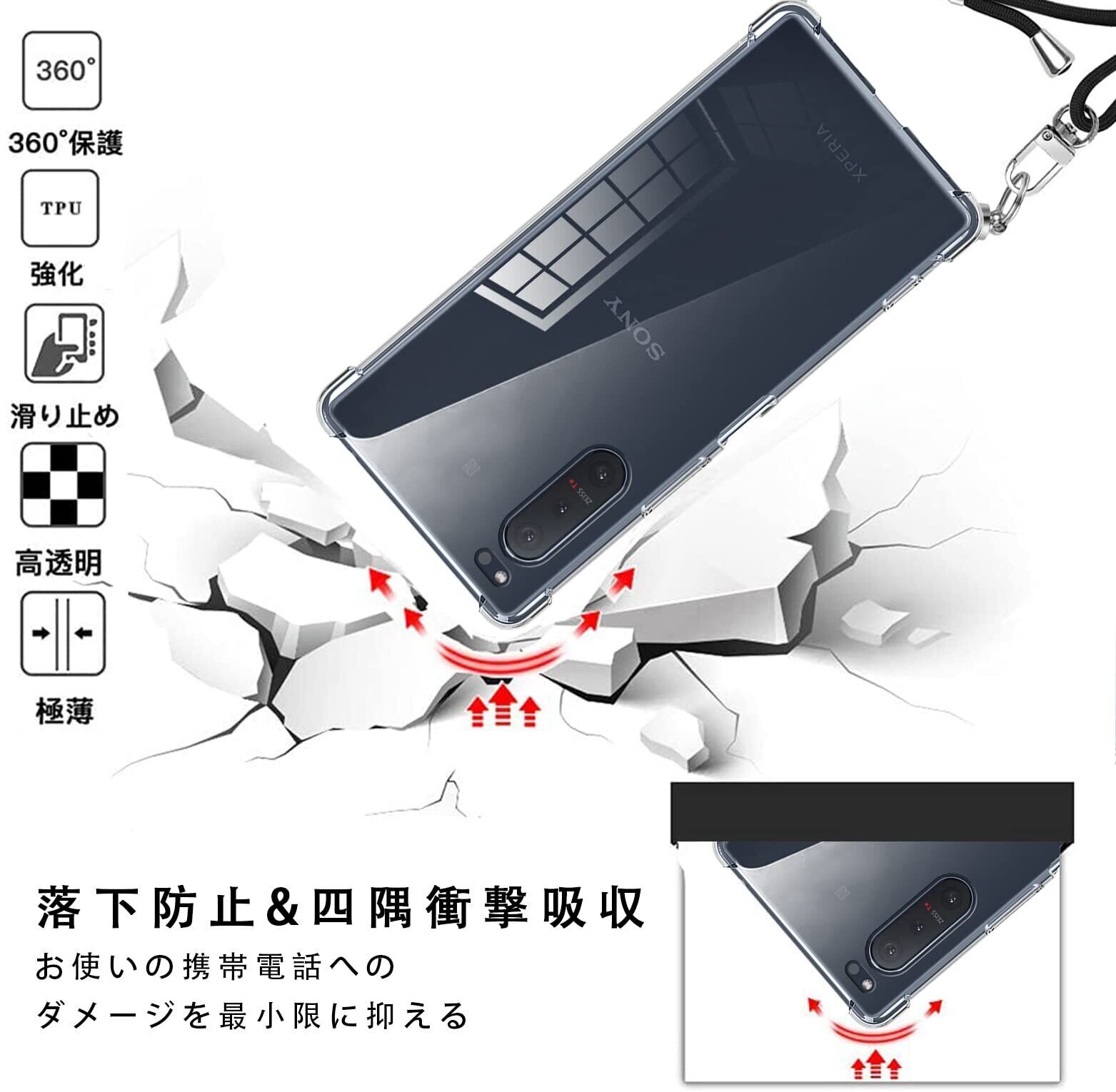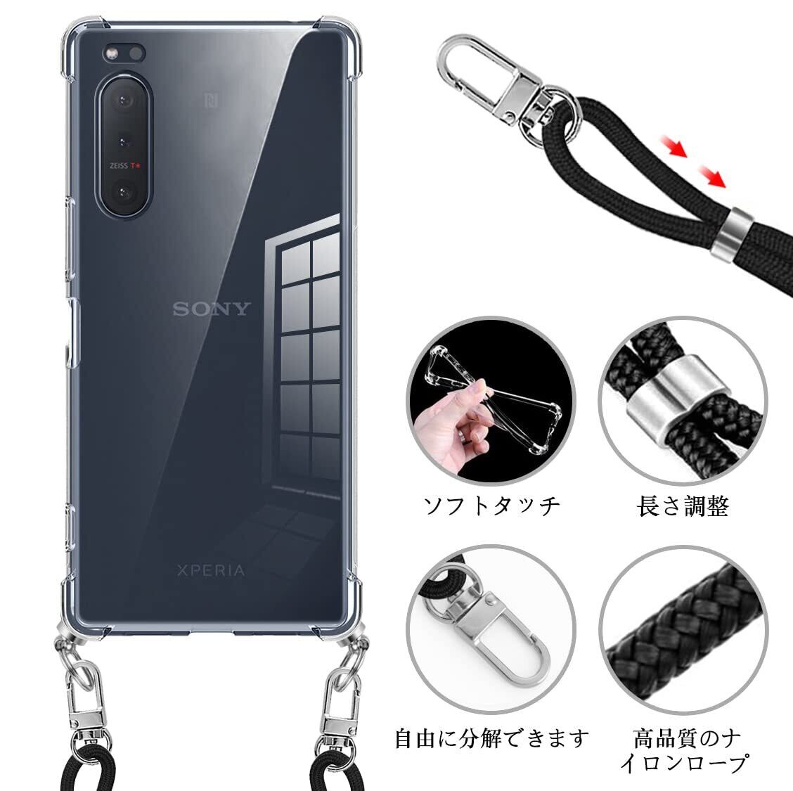 Xperia 5 ケース クリア Xperia SO-01M スマホケース SOV41 カバー 肩掛け 斜めかけ 901SO 縄掛け ケース ショルダー クリア 縄掛け TPU ストラップ付き 薄型軽量 1.5MM 取り外し可能 電波影響なし 指紋防止 落下防止 Qi急速充電対応 柔軟で変形しない 【透明】