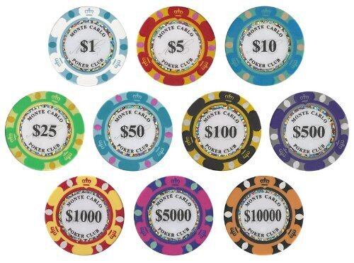 モンテカルロ(Monte carlo Poker Club)ポーカーチップはデノミ入りのポーカーチップとしてアメリカやヨーロッパで人気のポーカーチップです。 モンテカルロポーカーチップはいくつかのシリーズがあり、材質、大きさ、デザイン、カラーリングなどで数多くの種類が存在します。 その中でも大手カジノディストリビュータが取り扱うこのモンテカルロポーカーチップは、アメリカではスタンダードデザインとして高品質、耐久性、高級感などカジノグレードとして高い評価を得ています。