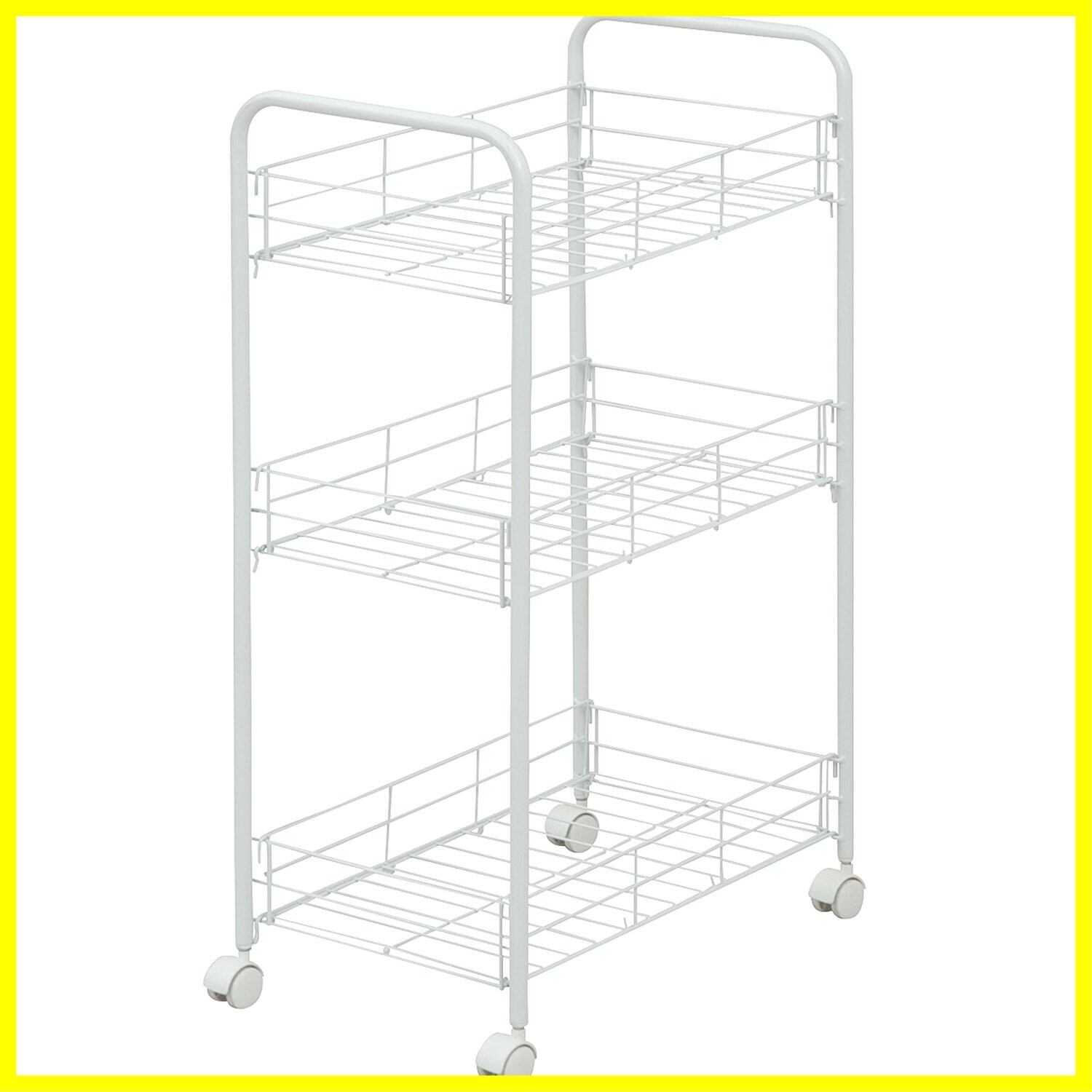 山善(YAMAZEN) スチールワゴン キャスター付き ホワイト RWR-3C(WH) 幅40×奥行25×高さ68cm