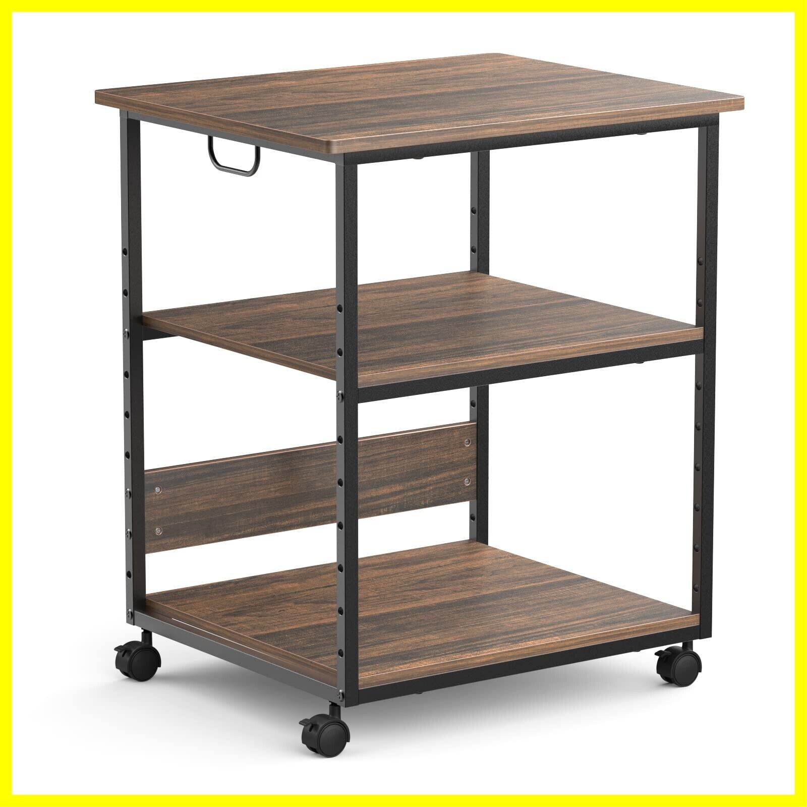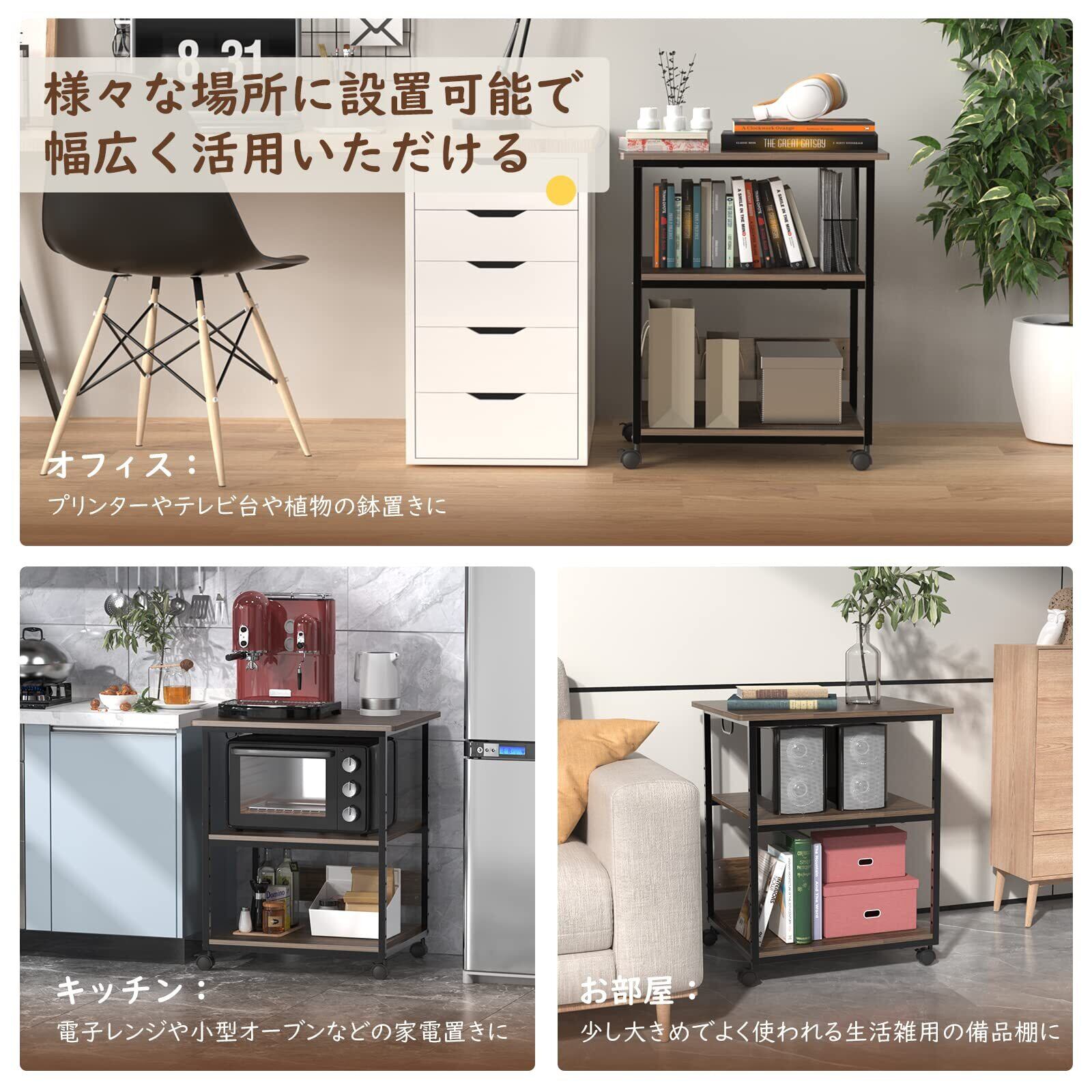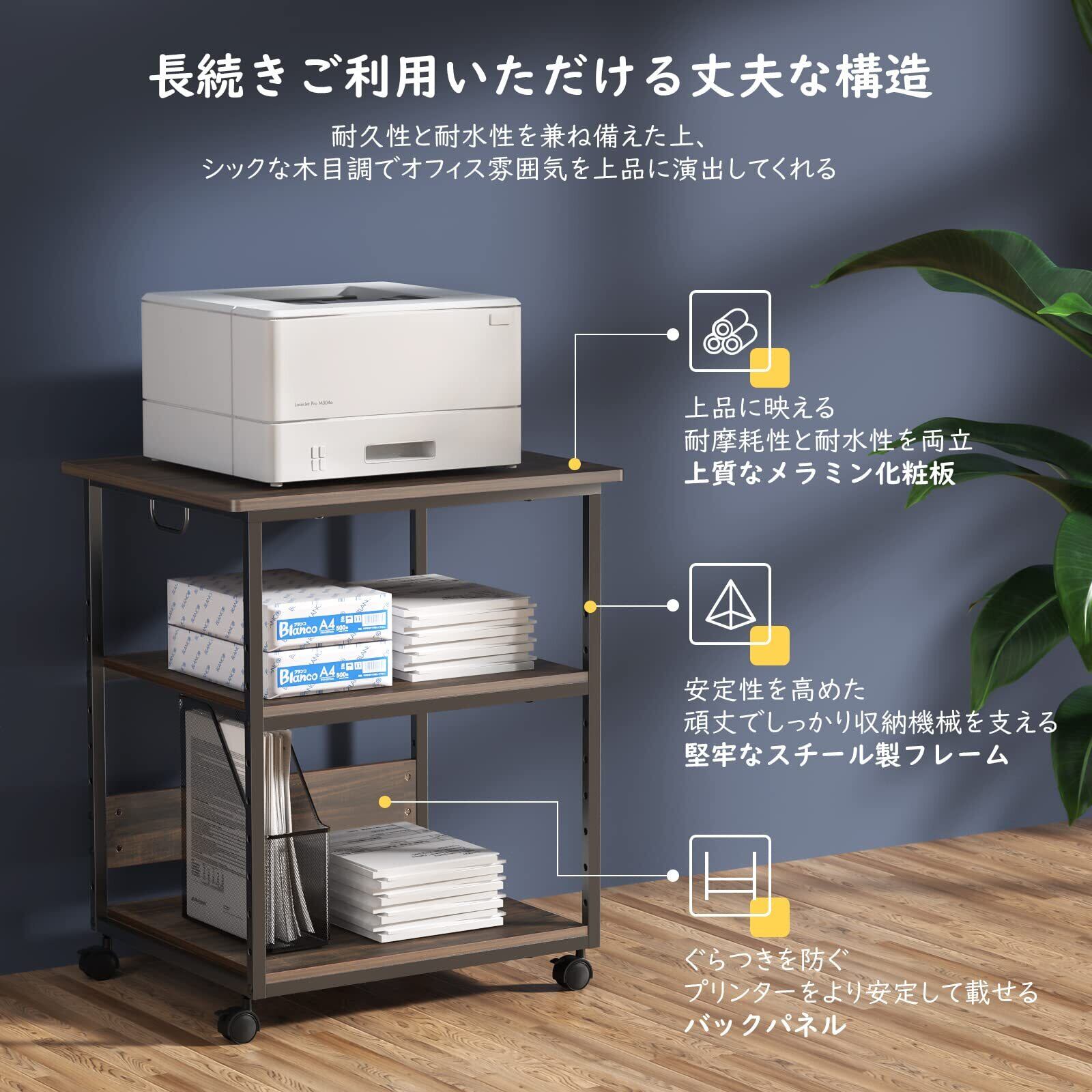 プリンター台 Housolution プリンターラック デスクサイドワゴン 収納棚 事務用品収納 キャスター付き 物置台 70kg高耐荷重 70cm高さ 中棚5段階調節可能 組立簡単 木目調