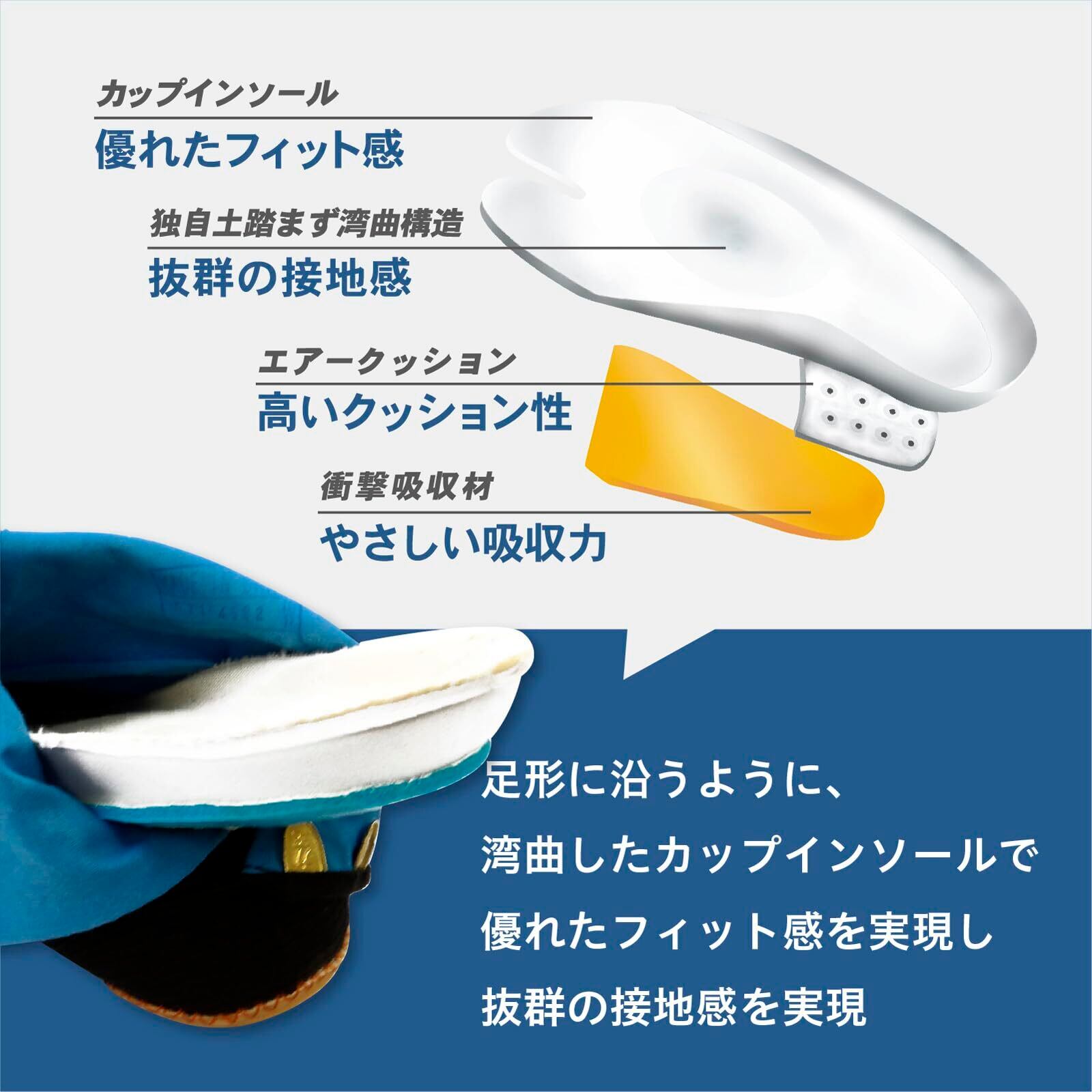 ◆土踏まず部分が盛り上がったカップインソールを採用しました。