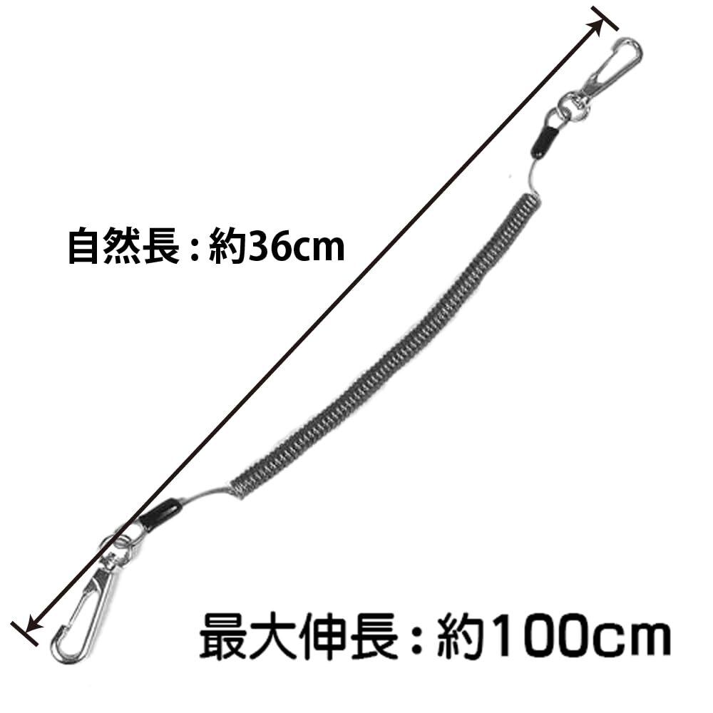 サイズ:全長36cm(板ナスカンパーツ含まず) コイル部分の長さ:約17cm(最大伸長:約1m)、コイルの幅:7mm コイル線経:2mm