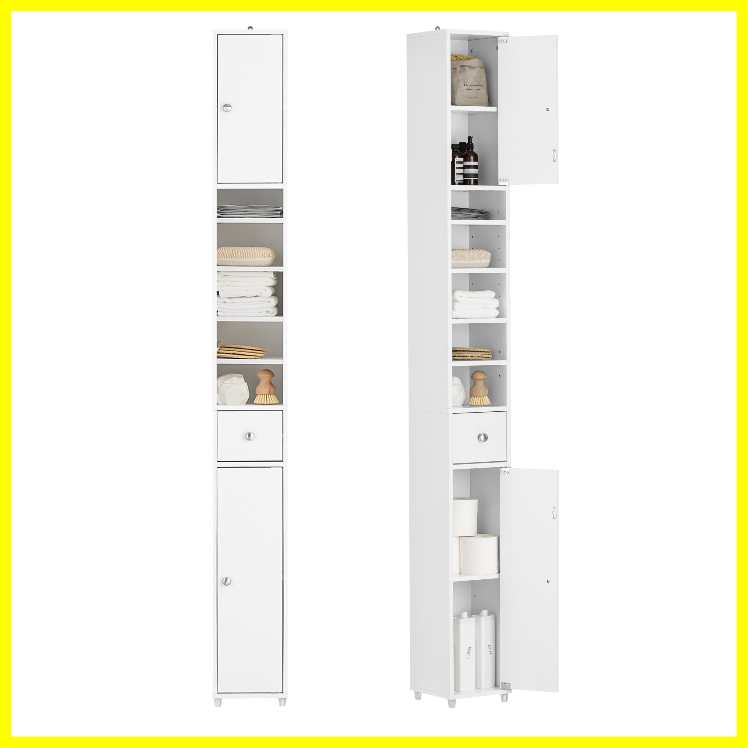 SoBuy 隙間 収納 洗面所 ランドリーラック スリム 食器棚 幅20×奥行20×高さ180cm すきま収納 洗面所用キャビネット 可動棚 サニタリーラック ランドリー(BZR34-W/ホワイト)