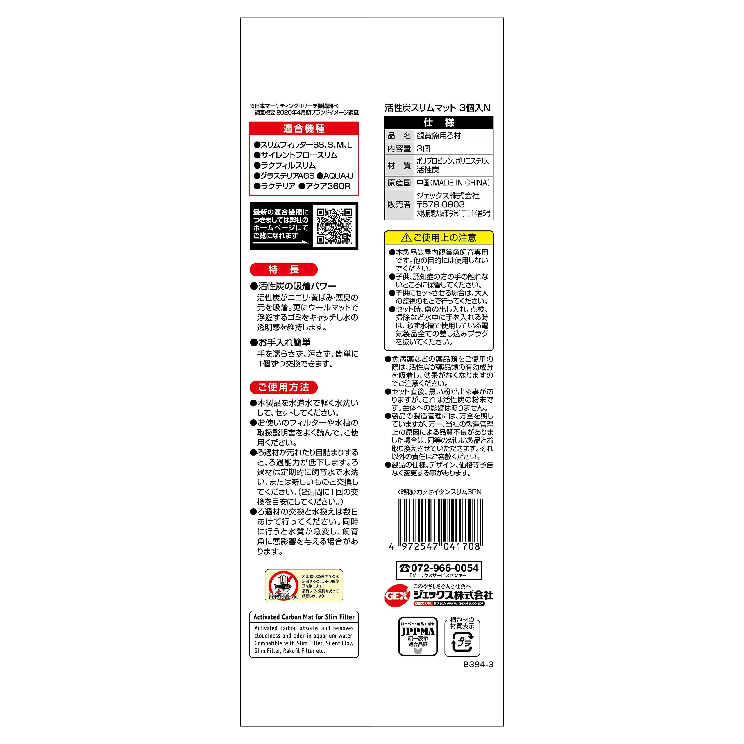 ジェックス GEX AQUA FILTER 活性炭スリムマット3個入N 交換ろ過材 スリムフィルター サイレントフロースリム