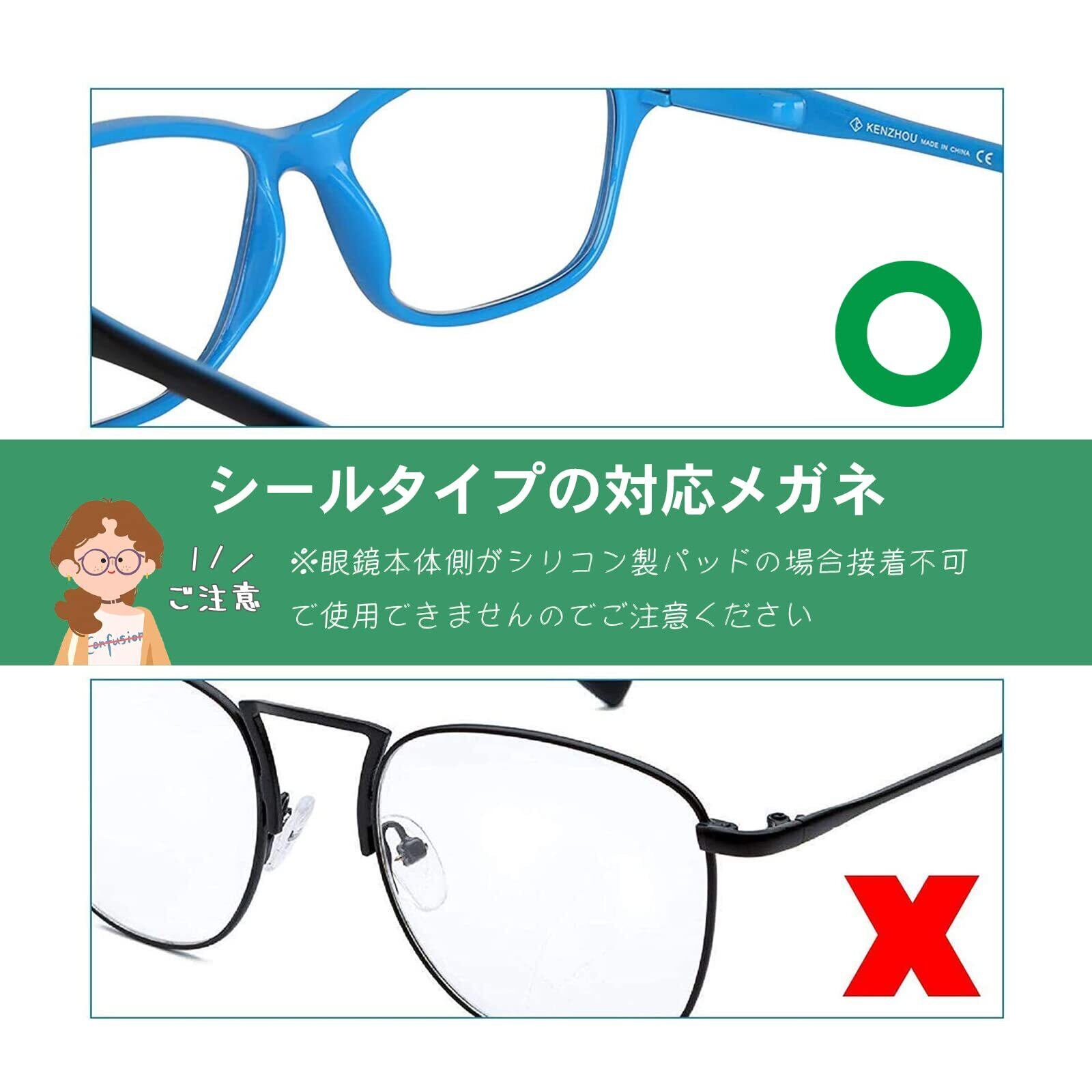 【簡単取付&対応幅が広い】 鼻パッドの使い方はクロスでメガネの鼻あて部分を拭き、鼻パッドのシールを剥してしっかりと押さえつけて眼鏡に貼り付けまるだけで完成です。メガネ用鼻パッドは様々な眼鏡に適用できます。 ●日常メガネ、PC用メガネやサングラス、フレーム眼鏡、サングラス、ノーズパッド、老眼鏡など、いろんなメガネに使用可能な眼鏡の鼻パットです。男女(メンズ・レディース)兼用、お年寄り、子供も使えます。眼鏡がよく滑って、鼻が低い人に適しています。
