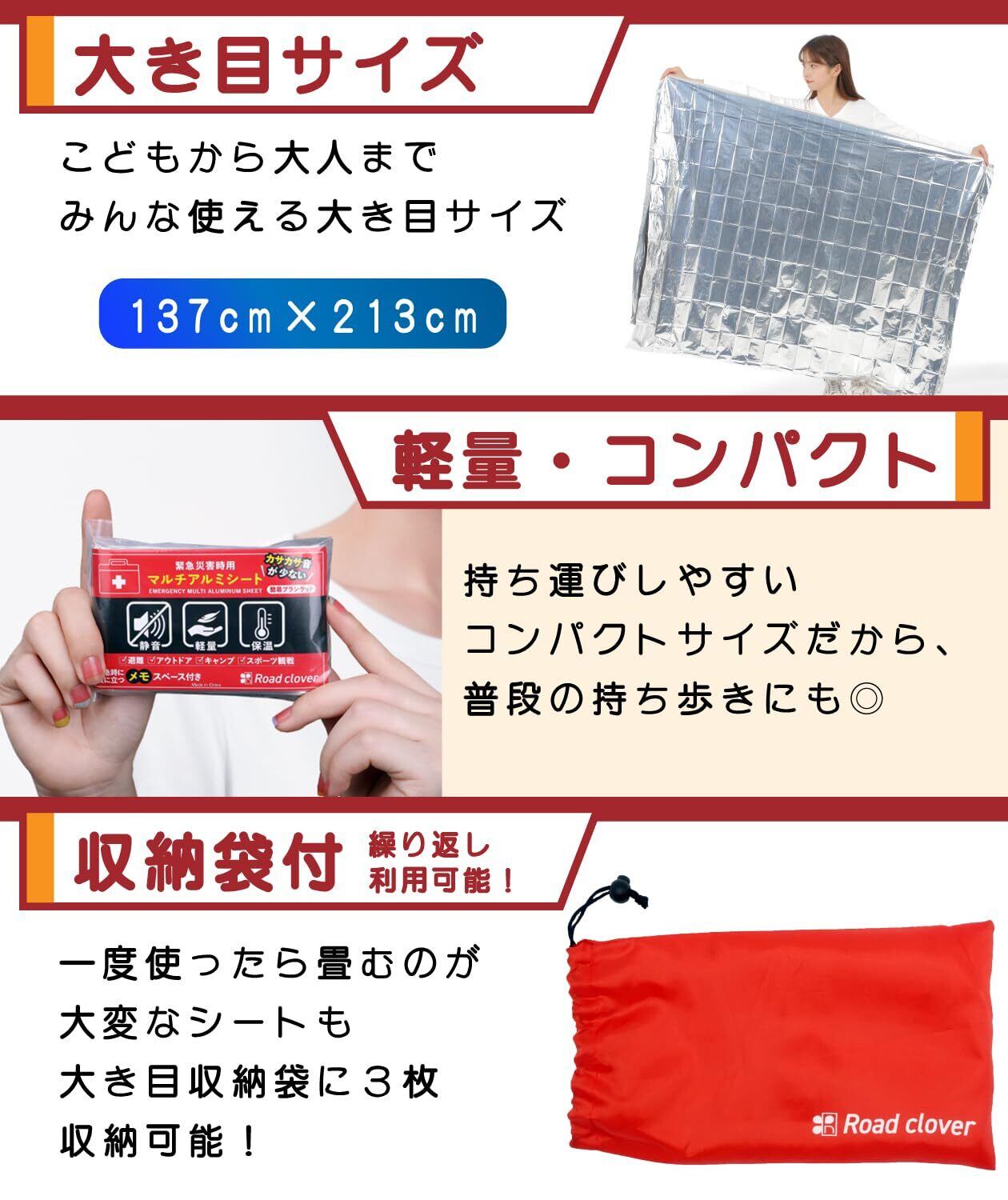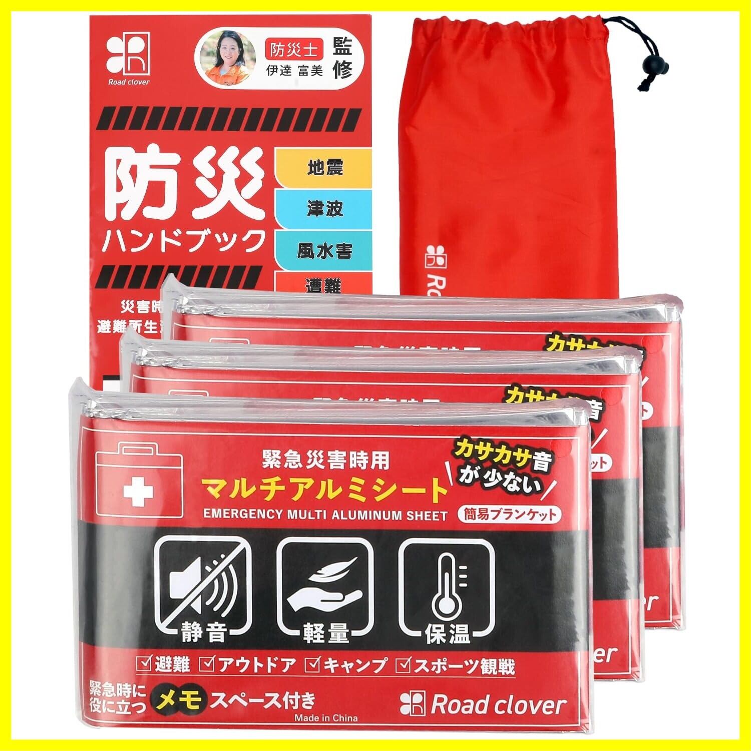 サバイバルシート アルミシート 防災 グッズ 【防災士監修 緊急時ガイド付】 カサカサ音少ない Road clover (3個)