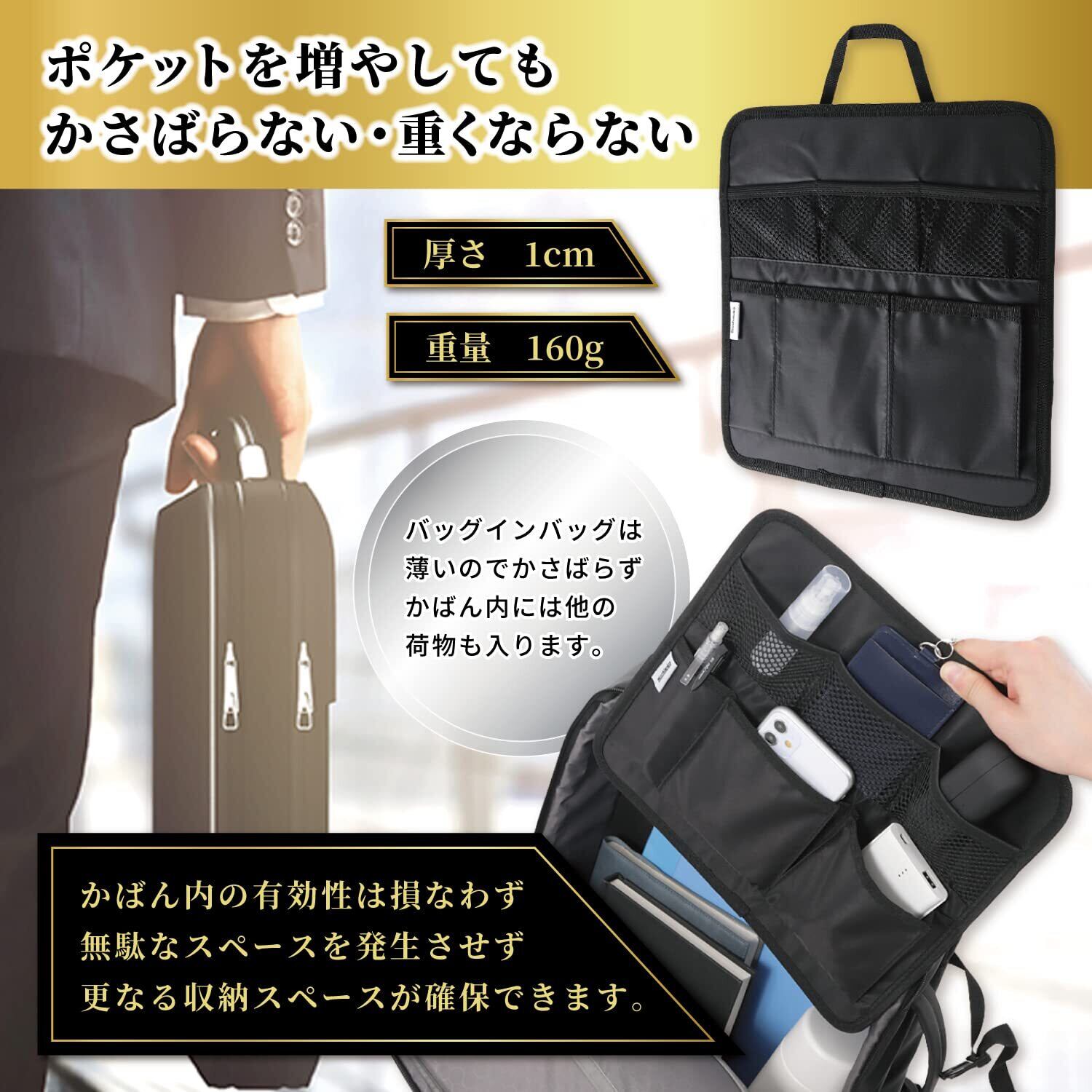 【薄型でかさばらない】 かばんの容量を損なわずにポケットが追加でき、今まで通りの荷物を収納しながらもバッグの中を効率的に使えます。