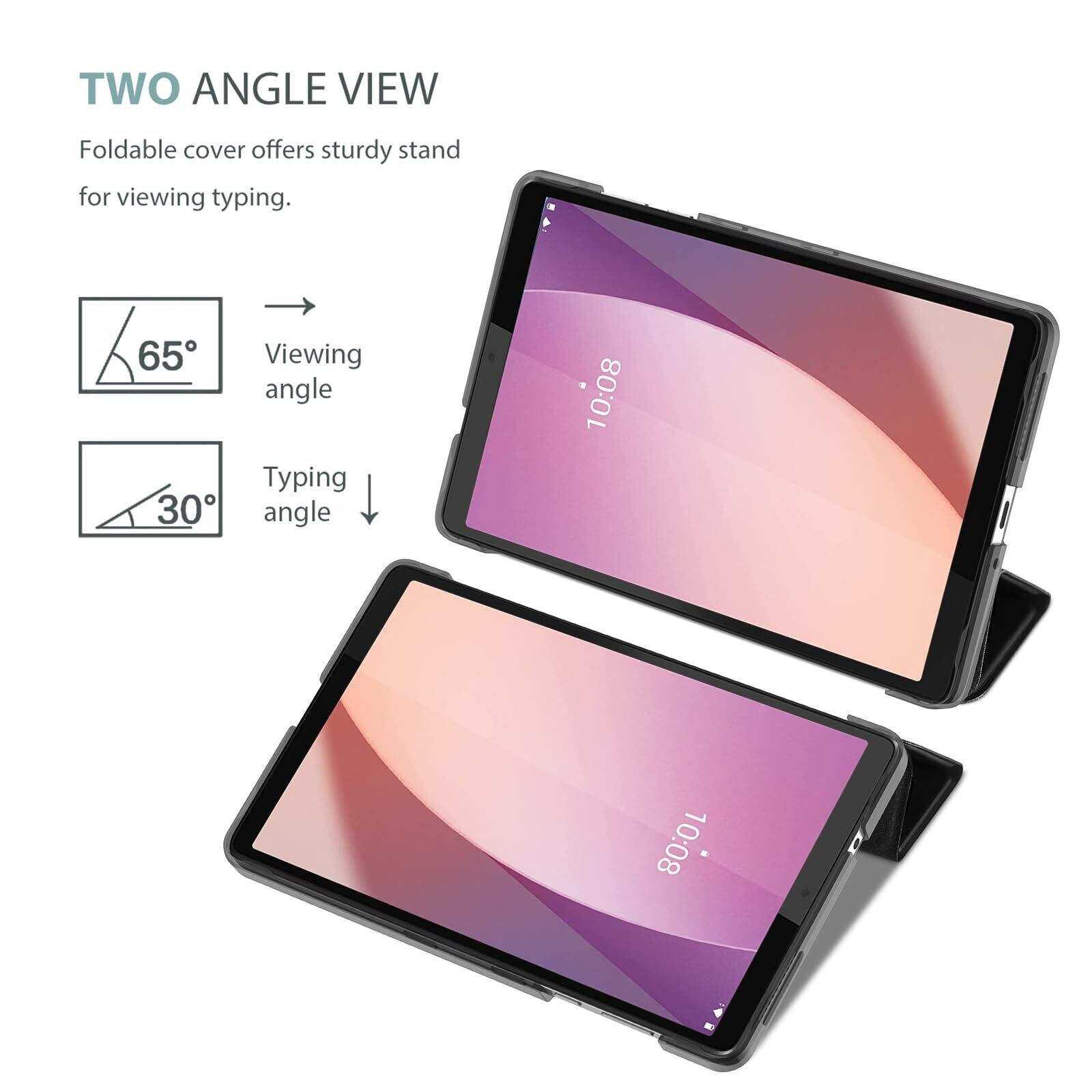 ProCase レノボ Tab M8 (4th Gen) 2023発売/NEC LAVIE Tab T8 8インチ 保護ケース 軽量 三つ折り オートスリープ/ウェイク対応 スタンドカバー 半透明バックカバー 対応機種:Lenovo Tab M8 (4th Gen) 2023発売(ZABU0172JP)/NEC LAVIE Tab T8(TAB08/H04)-ブラック