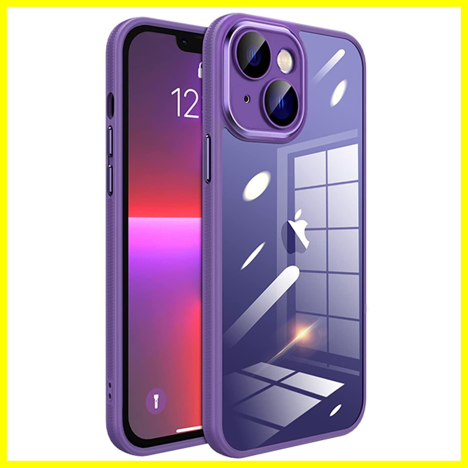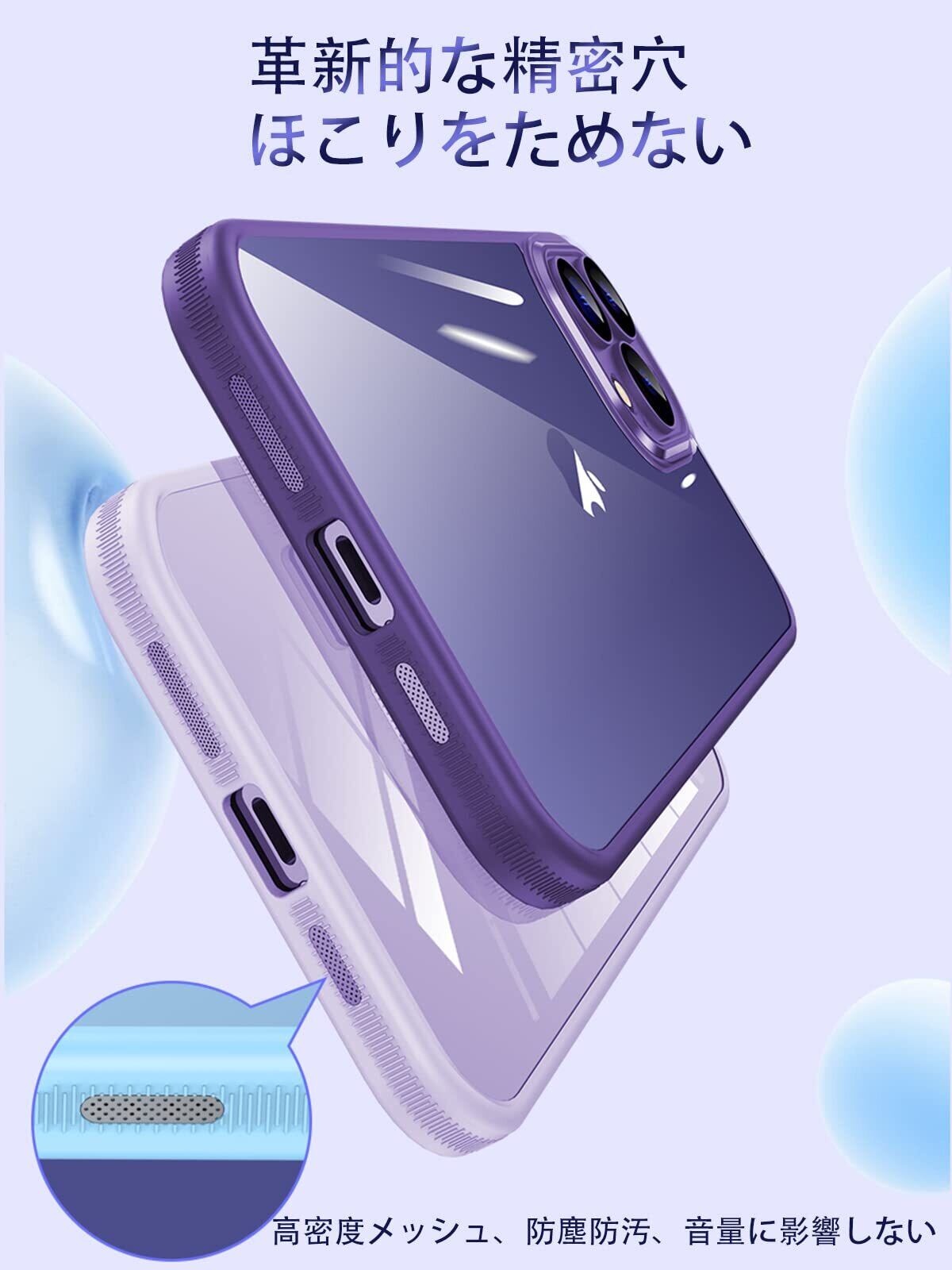 iphone 14専用ケース クリア シリコン アイホン14ケース カメラカバー付き 強化ガラスフィルムレンズ保護 超透明アクリル背面プレート2022新型6.1インチ オシャレなメッキ金属リング 黄変防止 指紋防止 ワイヤレス充電対応 防水防塵 ディープパープル
