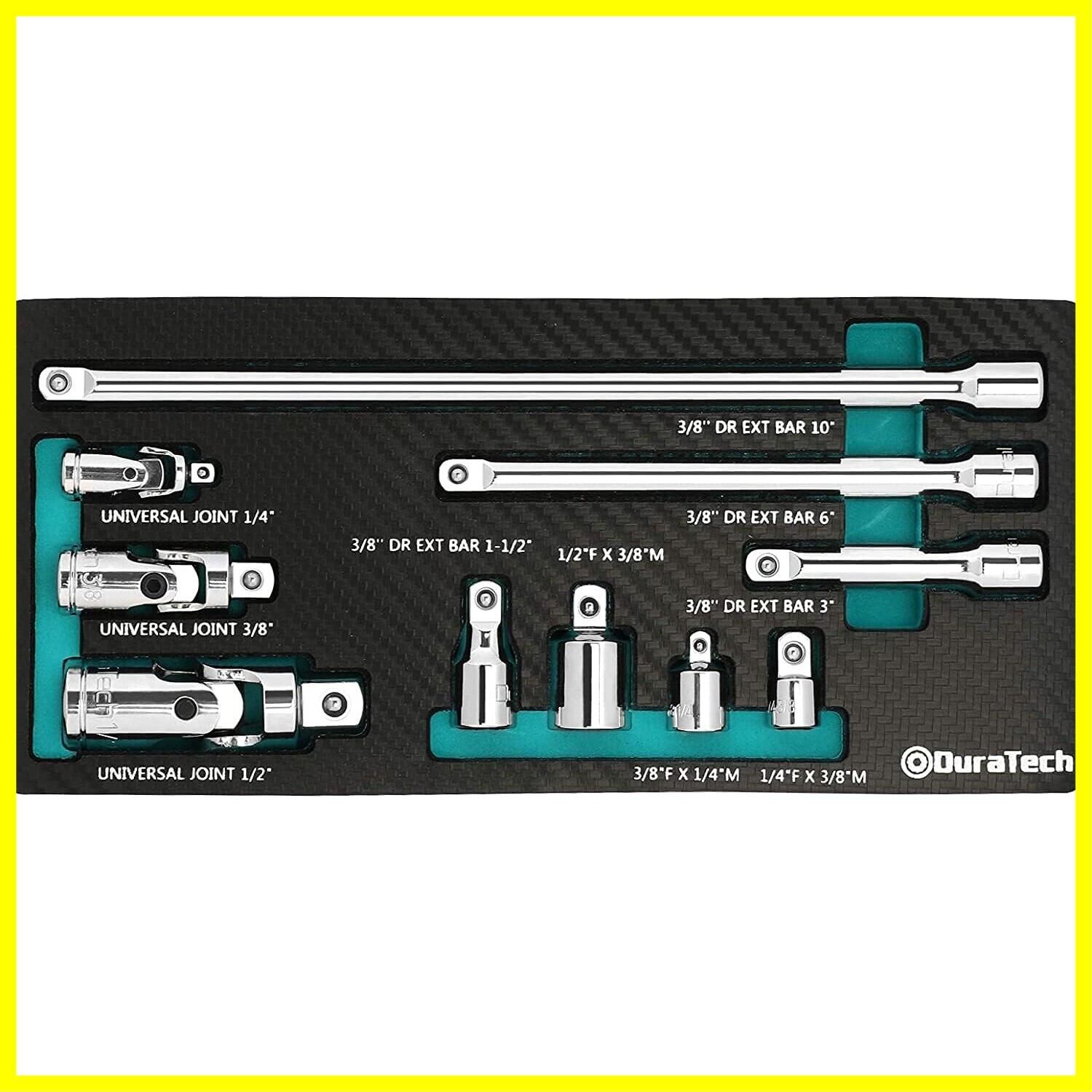 DURATECH ソケットアダプター エクステンションバー ユニバーサルソケット ソケット変換アダプター 差込角6.35mm 9.5mm 12.7mm メッキ仕上げ 収納ケース付 10点セット