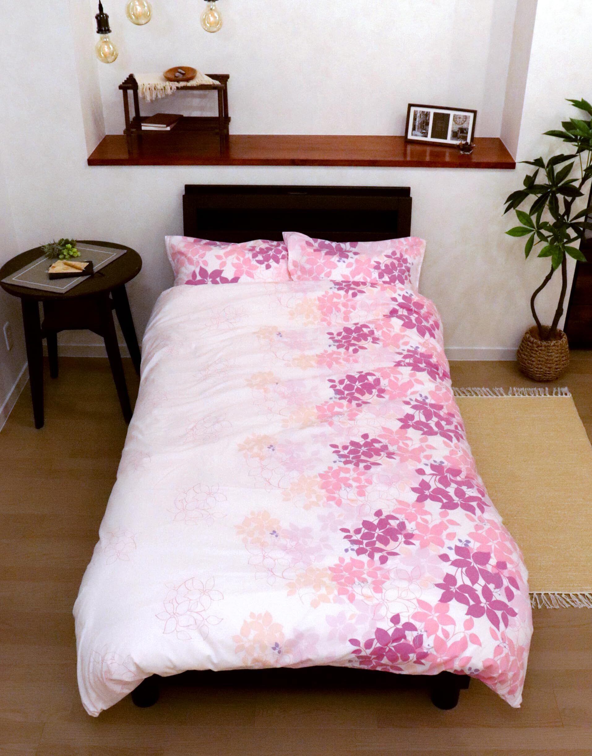 CAMEL PALMS 日本製 綿100% まくらカバー ピローケース ファスナー式 43×63cm用 リーフ柄 ピンク