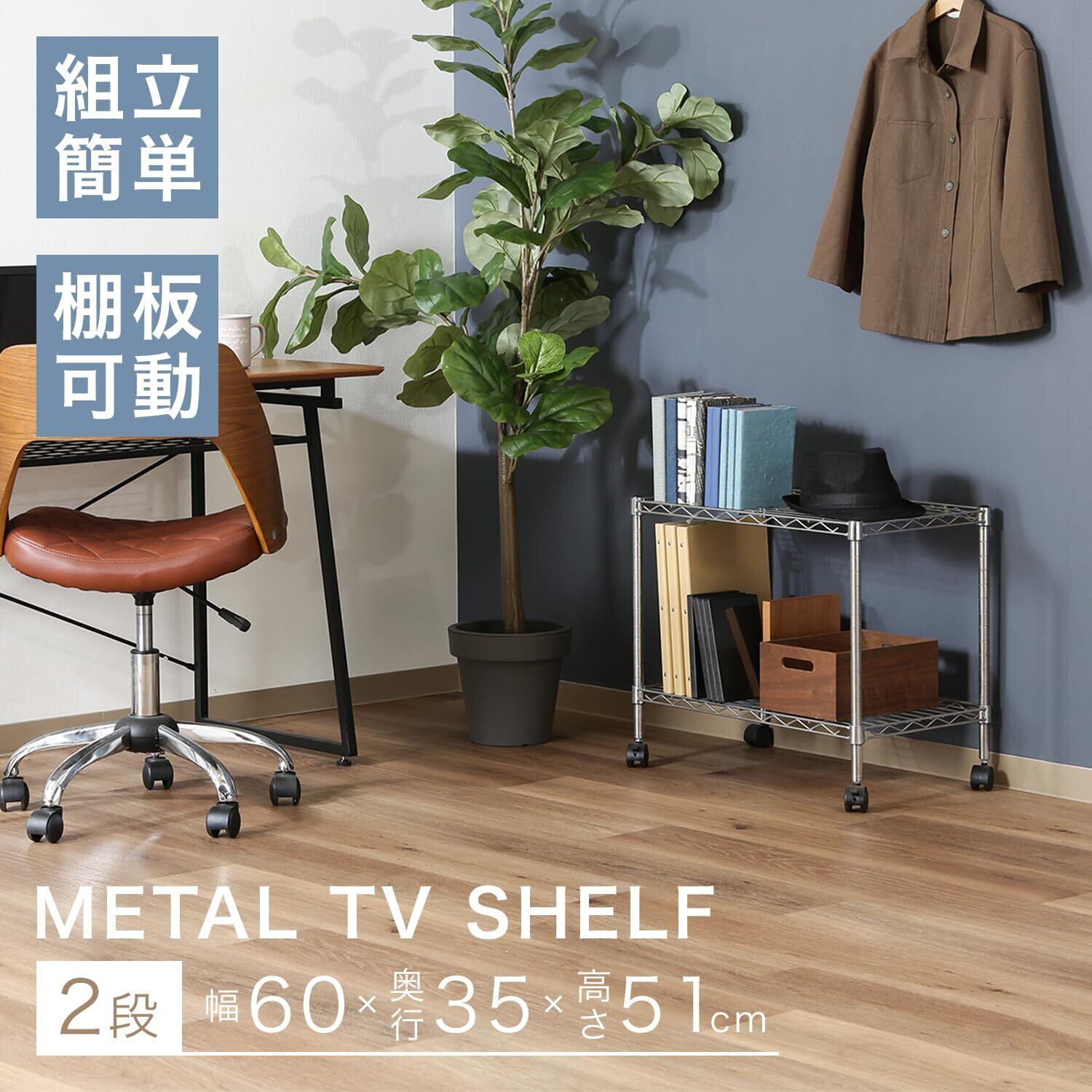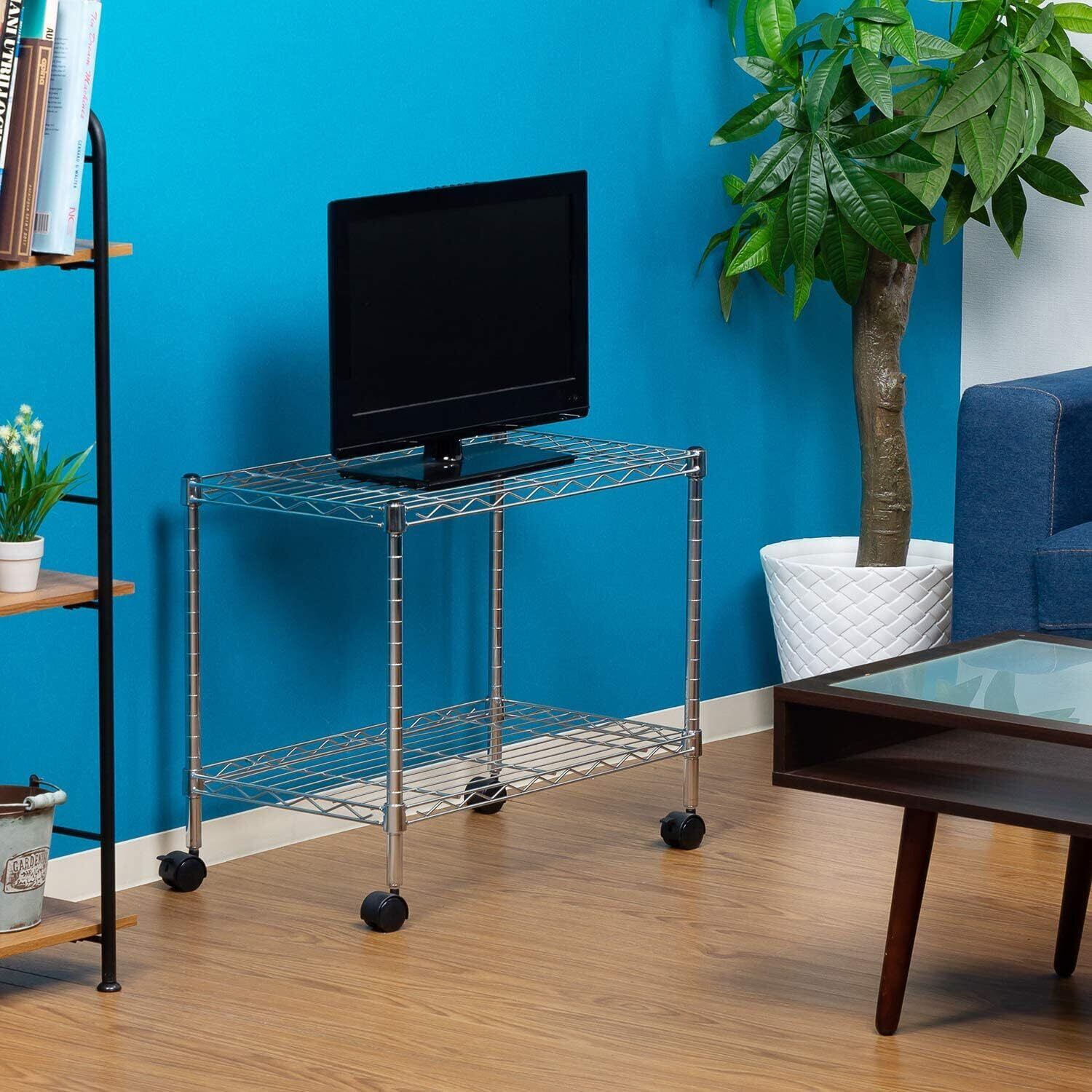 不二貿易(Fujiboeki) テレビ台 ローボード 2段 幅60×奥行35×高さ51m シルバー キャスター付き メタルラック 組立商品 91783