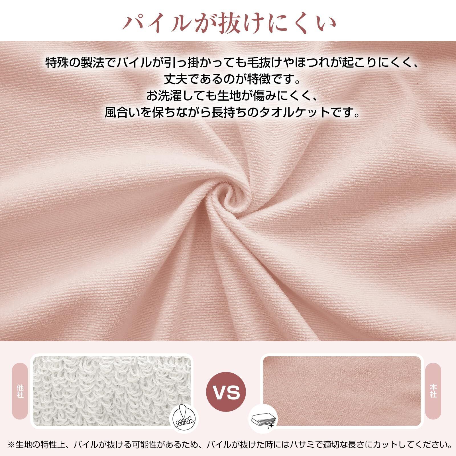 【パイルが抜けにくい】 パイルの抜けを防ぐため、本製品は適度な長さのパイルを採用しています。通常のタオルと比較するとポリエステル地糸の密度がつまっているため、パイルが抜けにくい構造になっております。