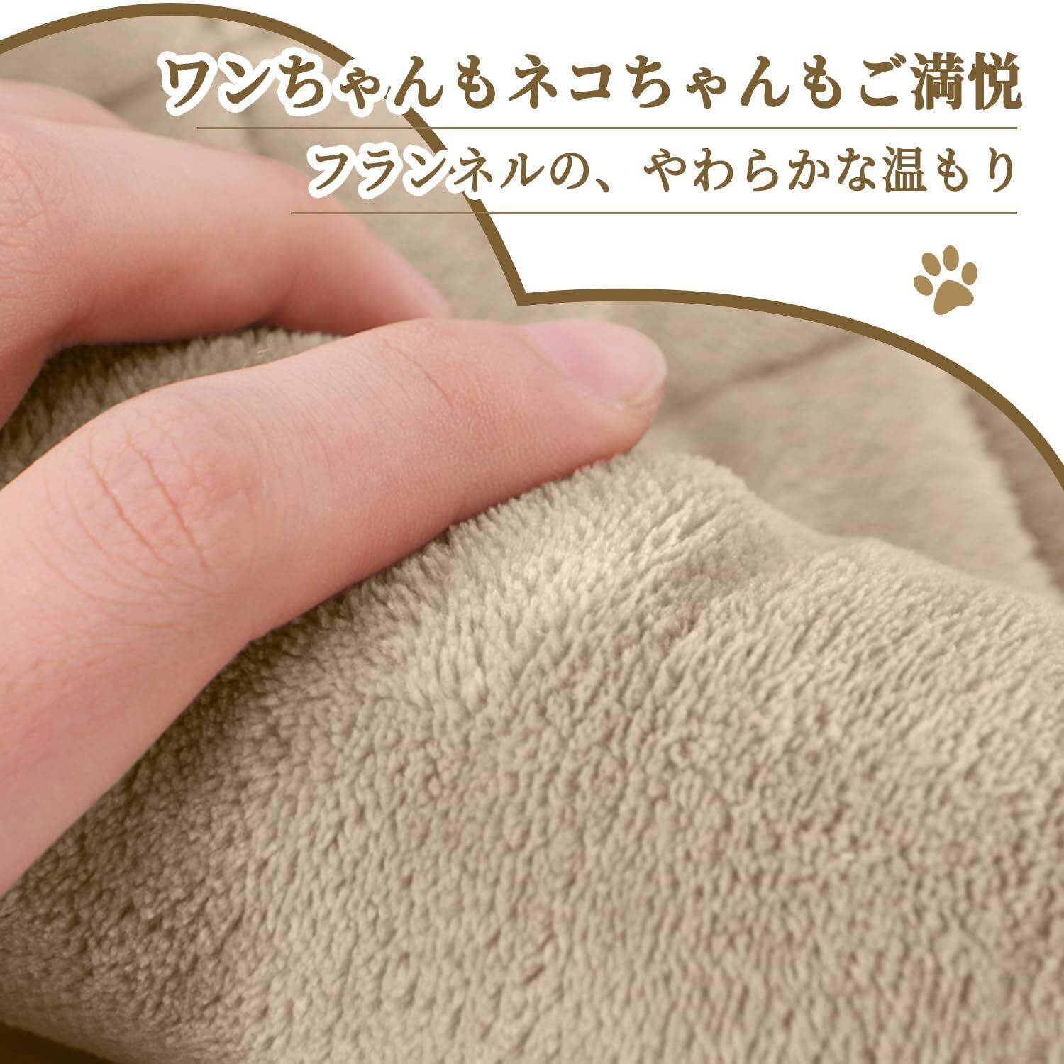 【密着感がある気持ちよい素材】表側は毛足が短くて密着したフランネル生地を採用。 肌触りの良さに定評があるマイクロファイバーの中でも、特に柔らかいのがこのフランネル繊維。 一般的なマイクロファイバーよりもっと柔らかくてなめらかな肌触り。 寝心地が抜群なので、ワンちゃんもネコちゃんも大喜び