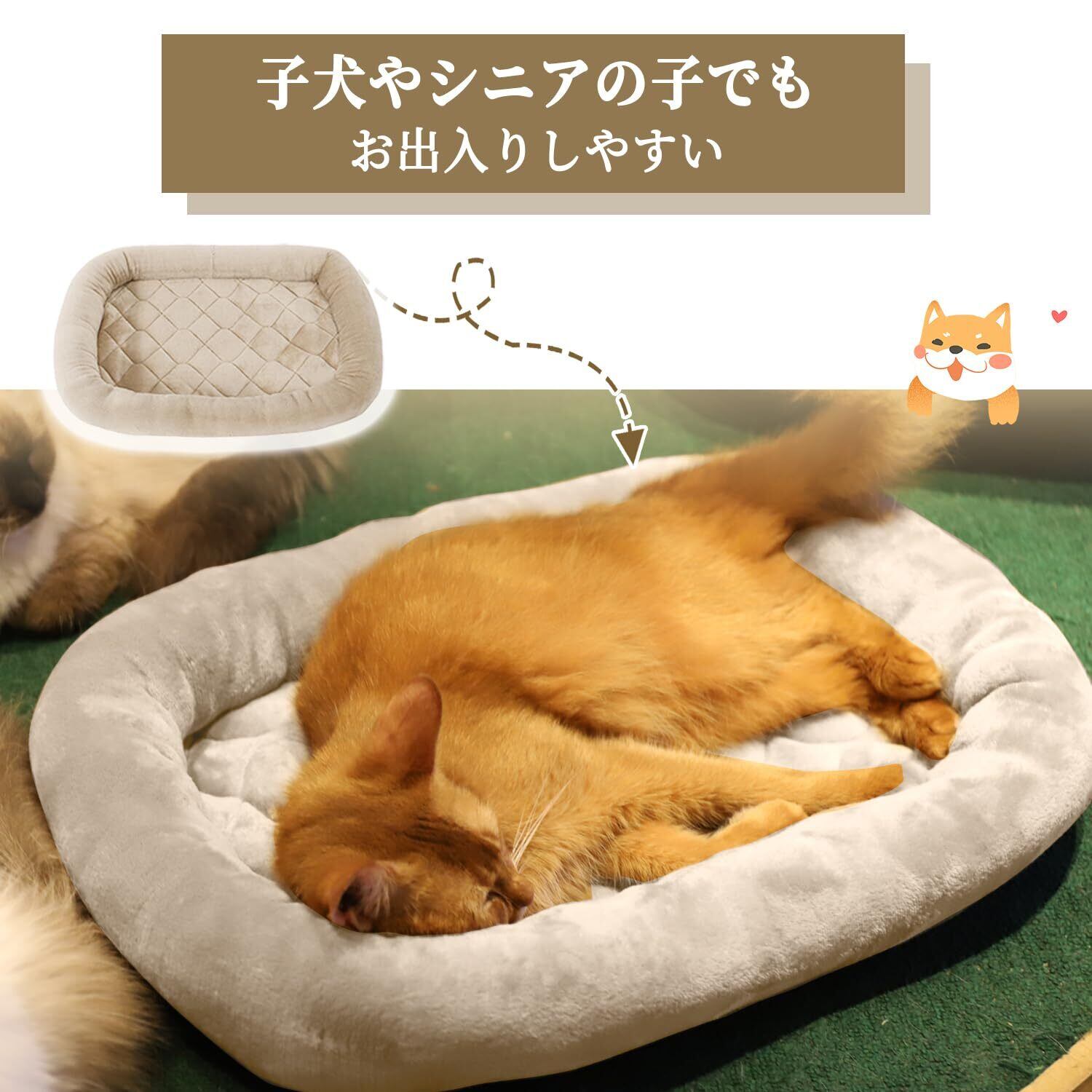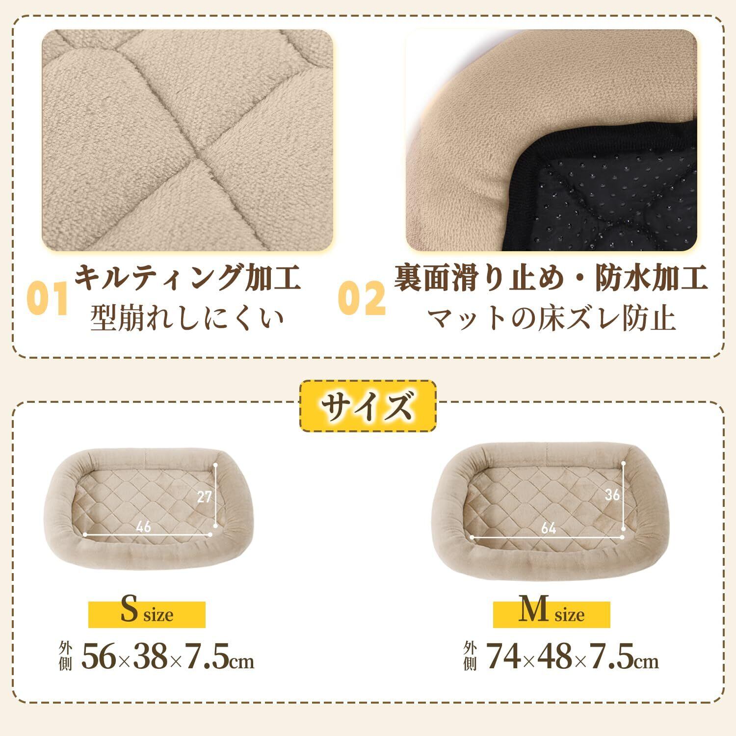 【オールシーズン使える】夏はマットの上に冷感マットを敷き、冬は保温性があるフランネル生地で、季節を問わずオールシーズンお使いいただけます。【キルティング加工】中央部分は中わたが偏らないキルティング加工することで、型崩れしにくくなっています。しっかりと縫製は丈夫で噛みついても破れにくいで、耐久性が抜群です。