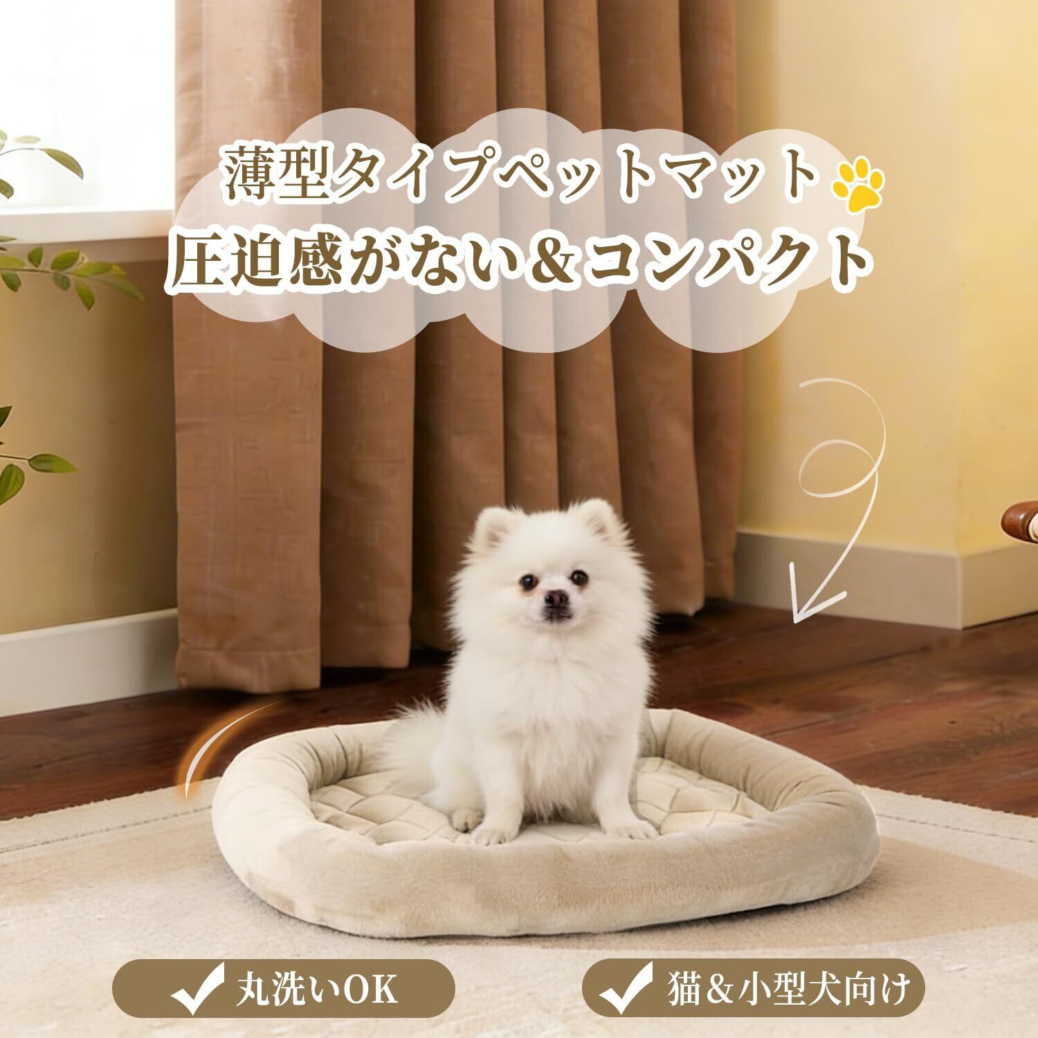 【滑り止め加工】裏面のノンスキッドボトムは、滑り止め機能があり置いた場所にそのまま滑ることなく置くことができます。【洗えるペットマット】手洗いOK、洗濯機洗いも可能です。いつでも清潔に保てることで、マットも快適に過ごすことができます。また、清潔を保つことで細菌やダニの増殖を抑えて、マットは皮膚疾患を予防できます。