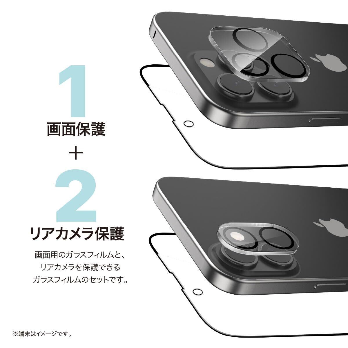 【画面保護+リアカメラ保護】… 画面用のガラスフィルムと、リアカメラを保護できるガラスフィルムのセットです。