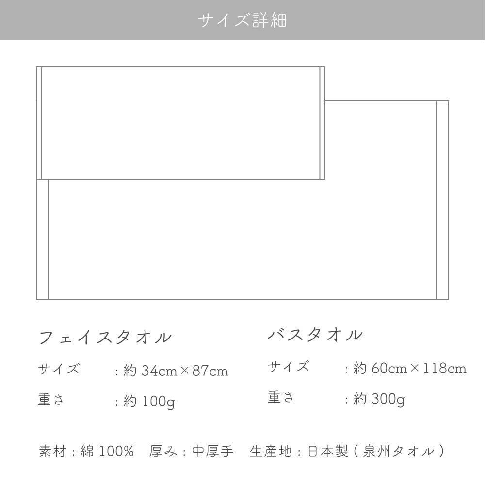 【バスタオル同色2枚セット】生産地:日本製(泉州タオル) 本体重量:300g(1枚あたり) 本体サイズ:約60×118cm(1枚あたり) 素材 : 綿100%