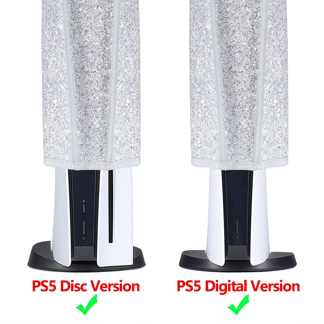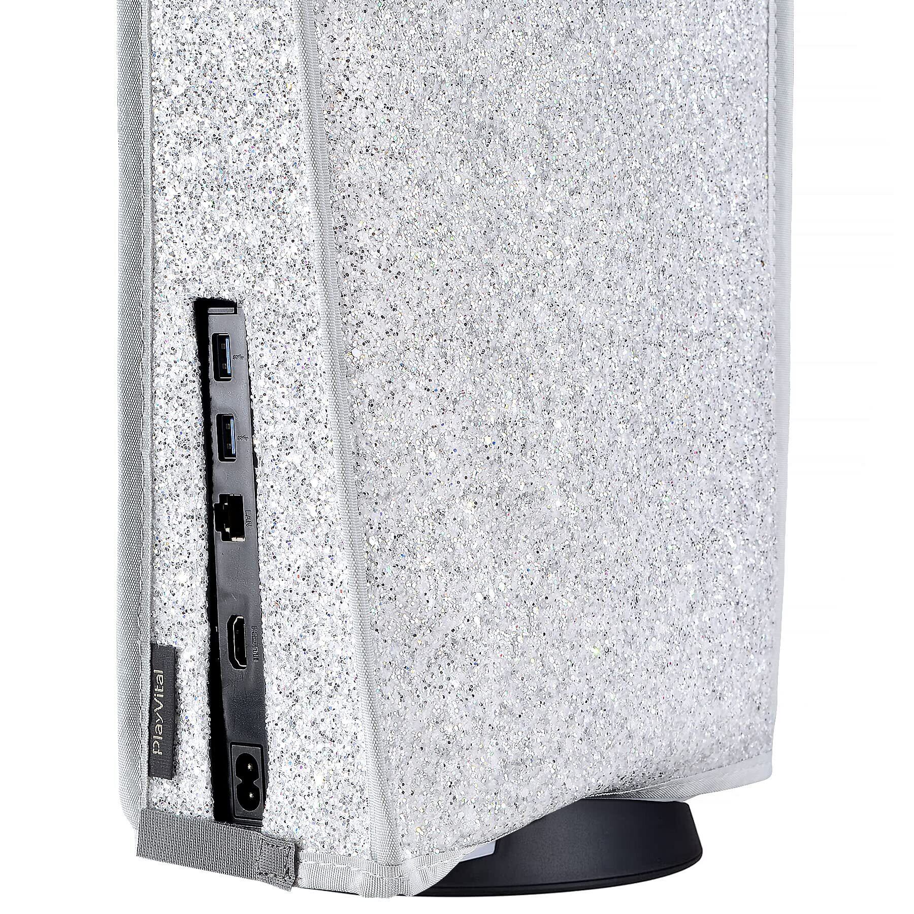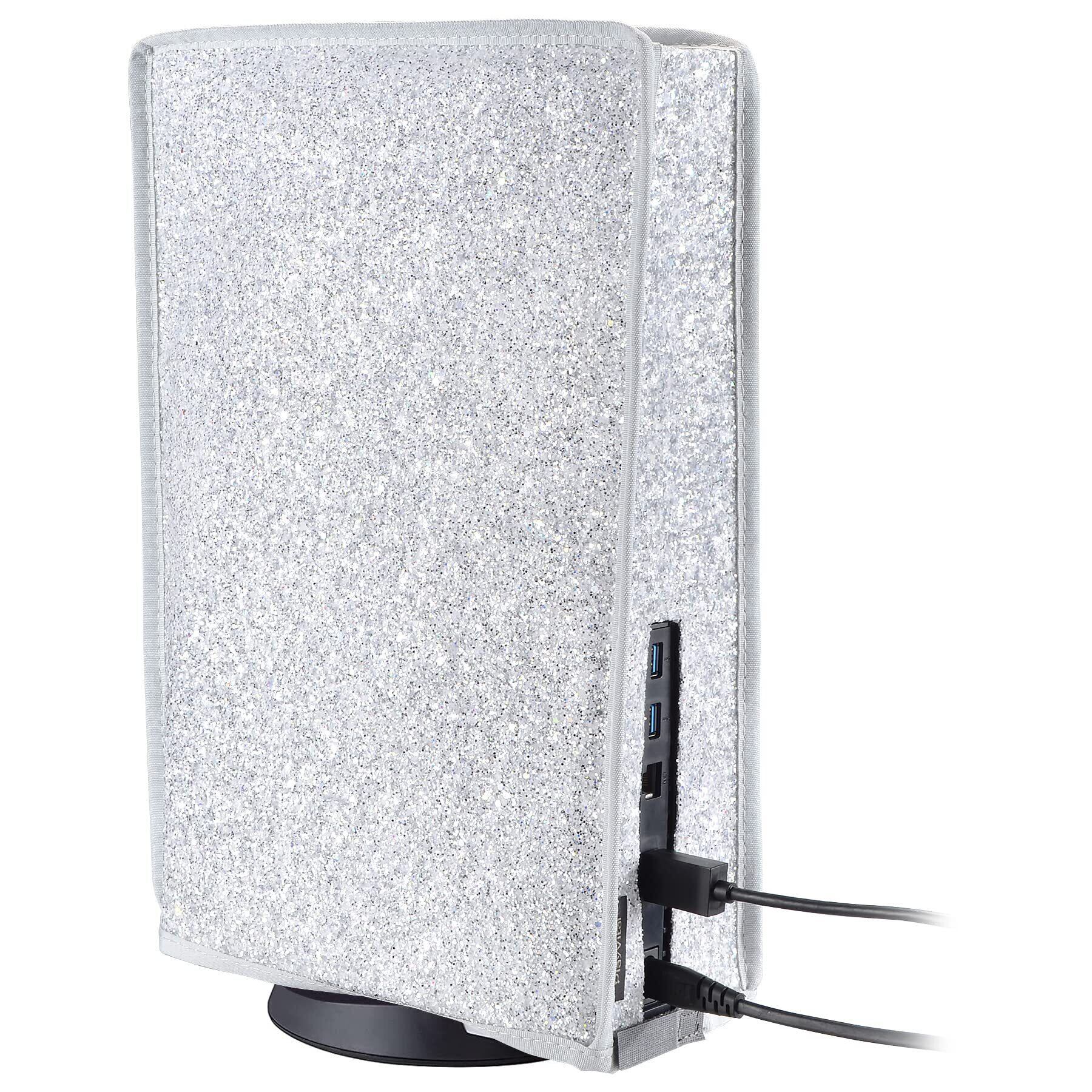 ps5に対応用グローインザダークダストカバー、柔らかくてきれいなダストカバー(縦式)はプレーステーション5コンソールに適用可能。傷防止防水カバーはデジタルバージョンやディスクバージョンに対応する【スパークルシルバー】