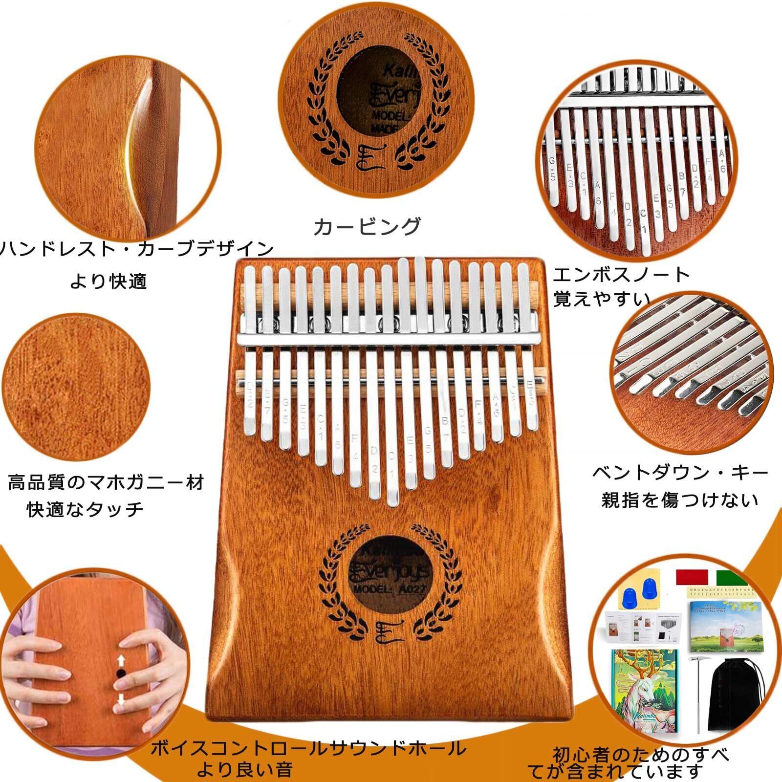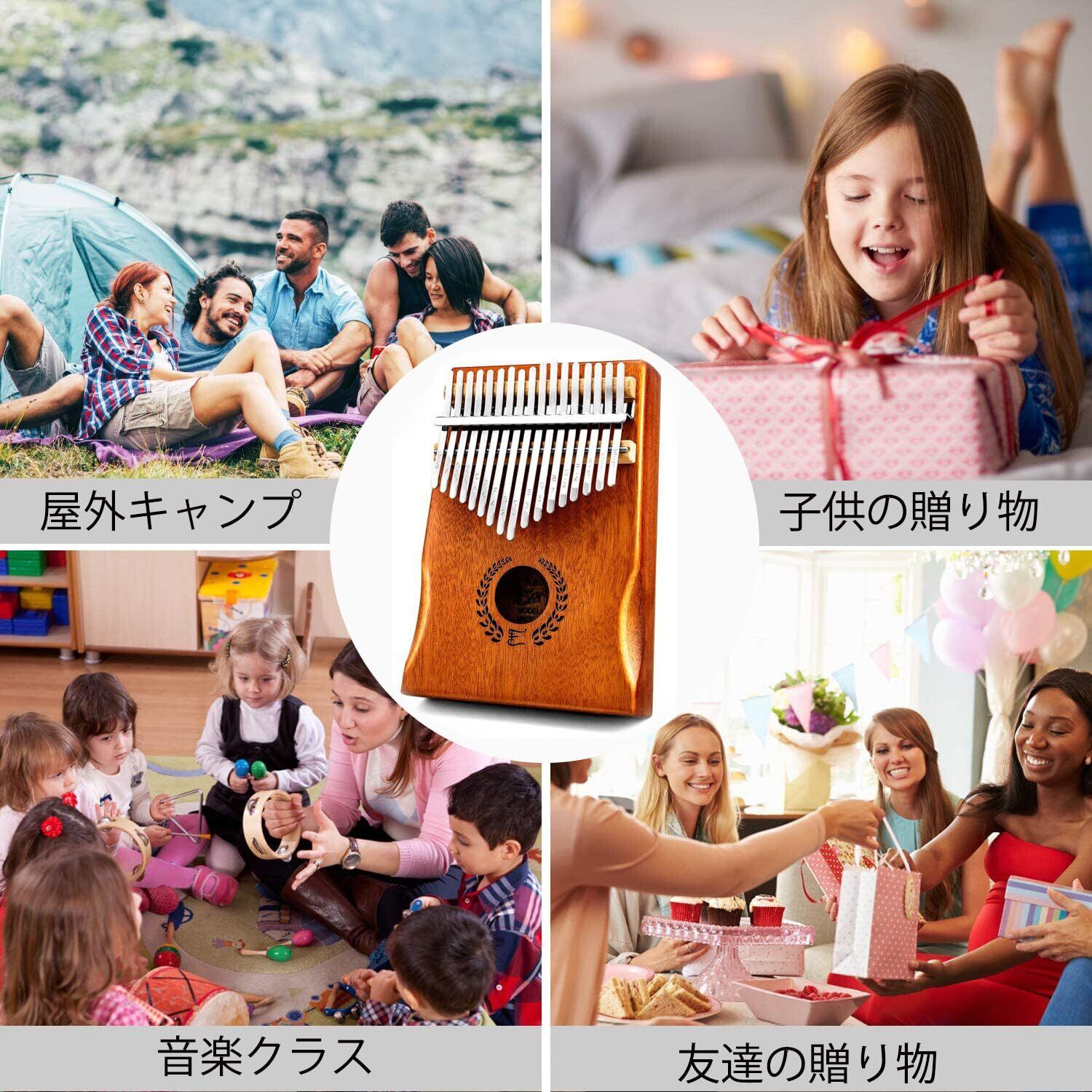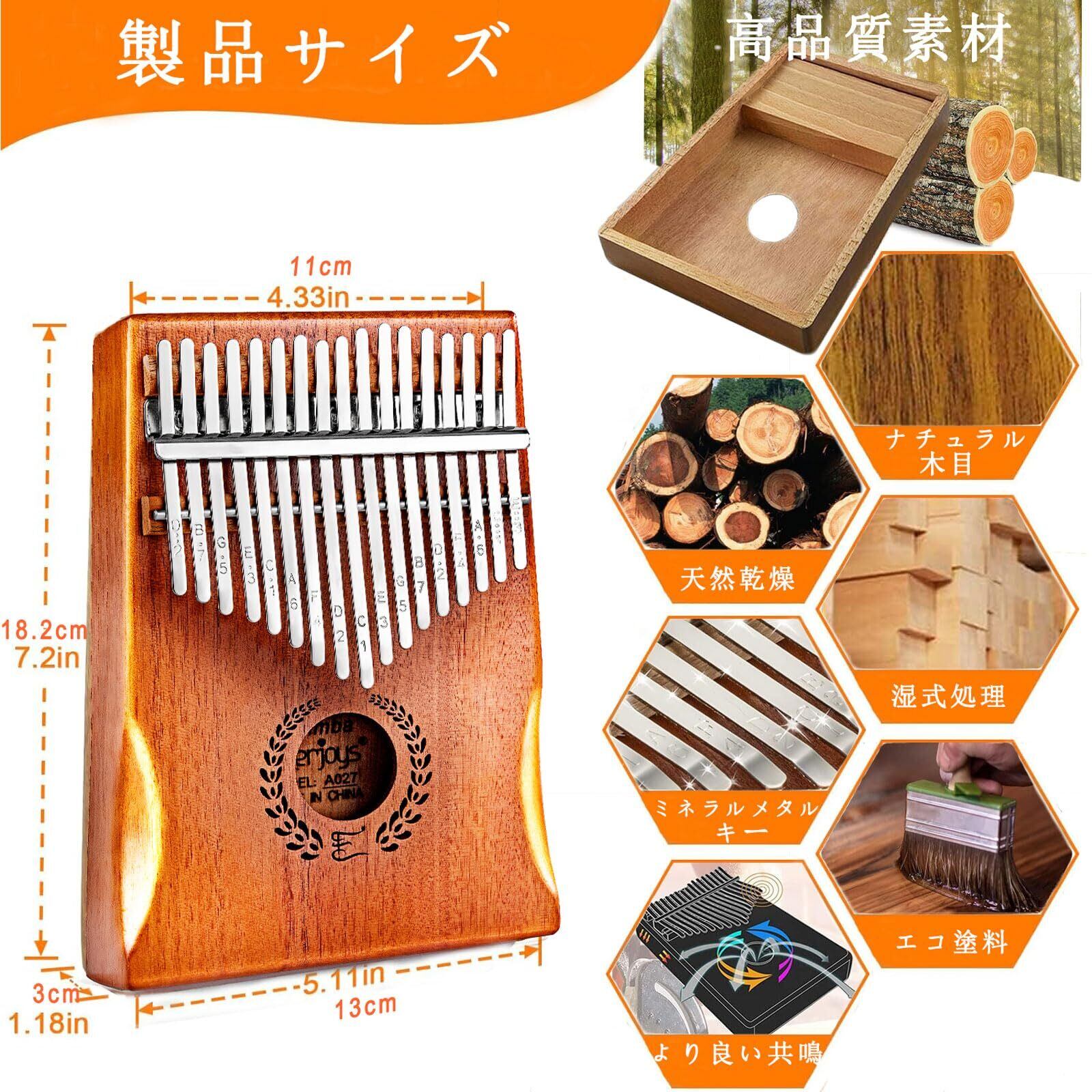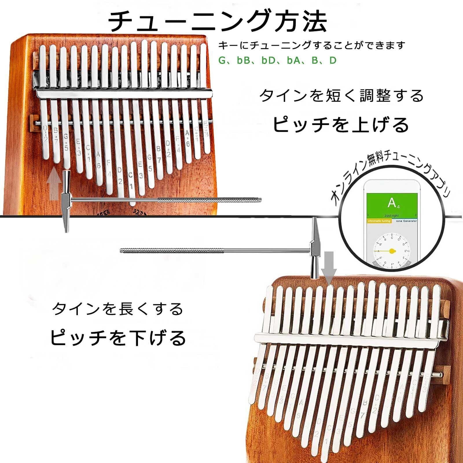 カリンバ 17 キー 初心者セット マホガニー チューニング済み 音階刻印 調律済み 親指ピアノ 日本語楽譜付き 入門書付き 初心者向けの楽器セット付き親指ピアノ kalimba 子供 大人へのギフト all in one kit
