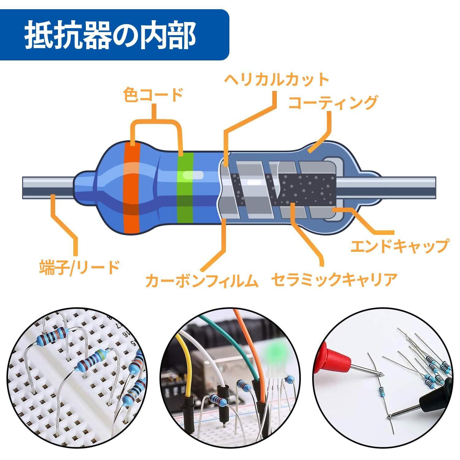 【幅広い種類の抵抗器】 30種類の抵抗器があり、各抵抗値は20個ずつ、合計600個入っています。この30種類の抵抗器には、10Ω、22Ω、47Ω、100Ω、150Ω、200Ω、220Ω、270Ω、330Ω、470Ω、510Ω、680Ω、1KΩ、2KΩ、2.2kΩ、3.3kΩ、4.7kΩ、5.1kΩ、6.8kΩ、10kΩ、20kΩ、47kΩ、51kΩ、68kΩ、100kΩ、220kΩ、6.8kΩ、10kΩ、20kΩ、47kΩ、51kΩ、68kΩ、100kΩ、220kΩ、100kΩ、220kΩ、68kΩが含まれます。100kΩ、220kΩ、300kΩ、470kΩ、680KΩ、1MΩ。