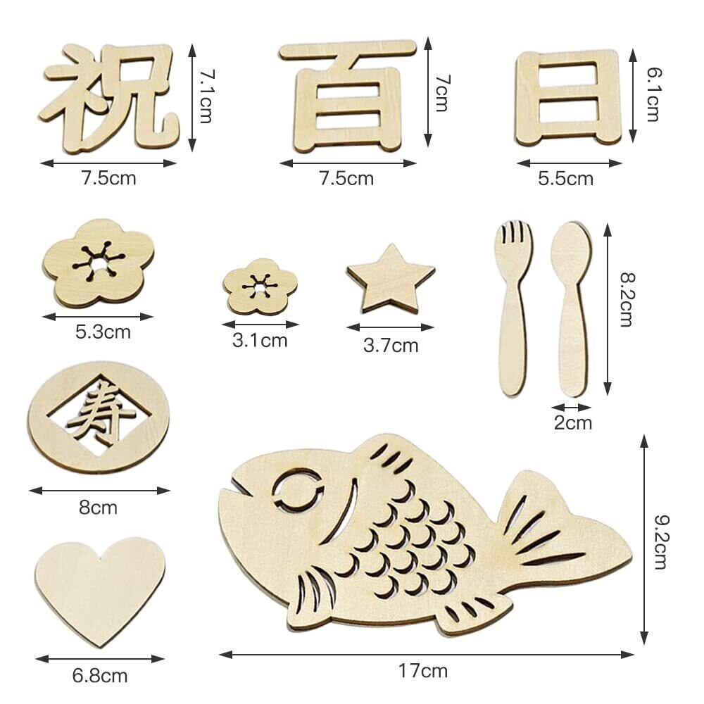 Renjzle 百日祝い 木製レターバナー 12枚セット お食い初め・誕生日・成長記録に 100日祝い 飾り ガーランドお誕生日 写真道具 赤ちゃんの天然寝相アート 記念写真に 出産祝いに最適 (A-12個セット)