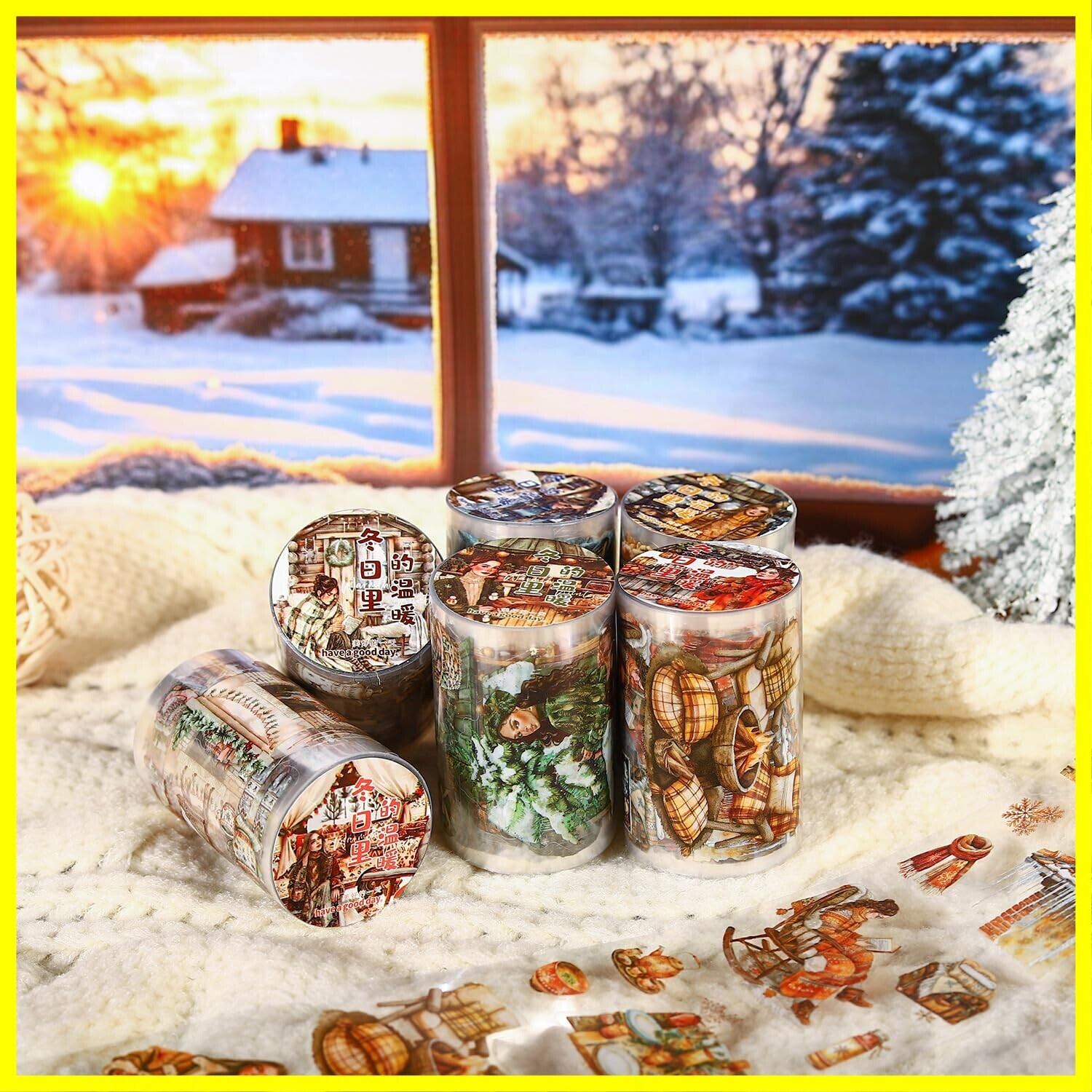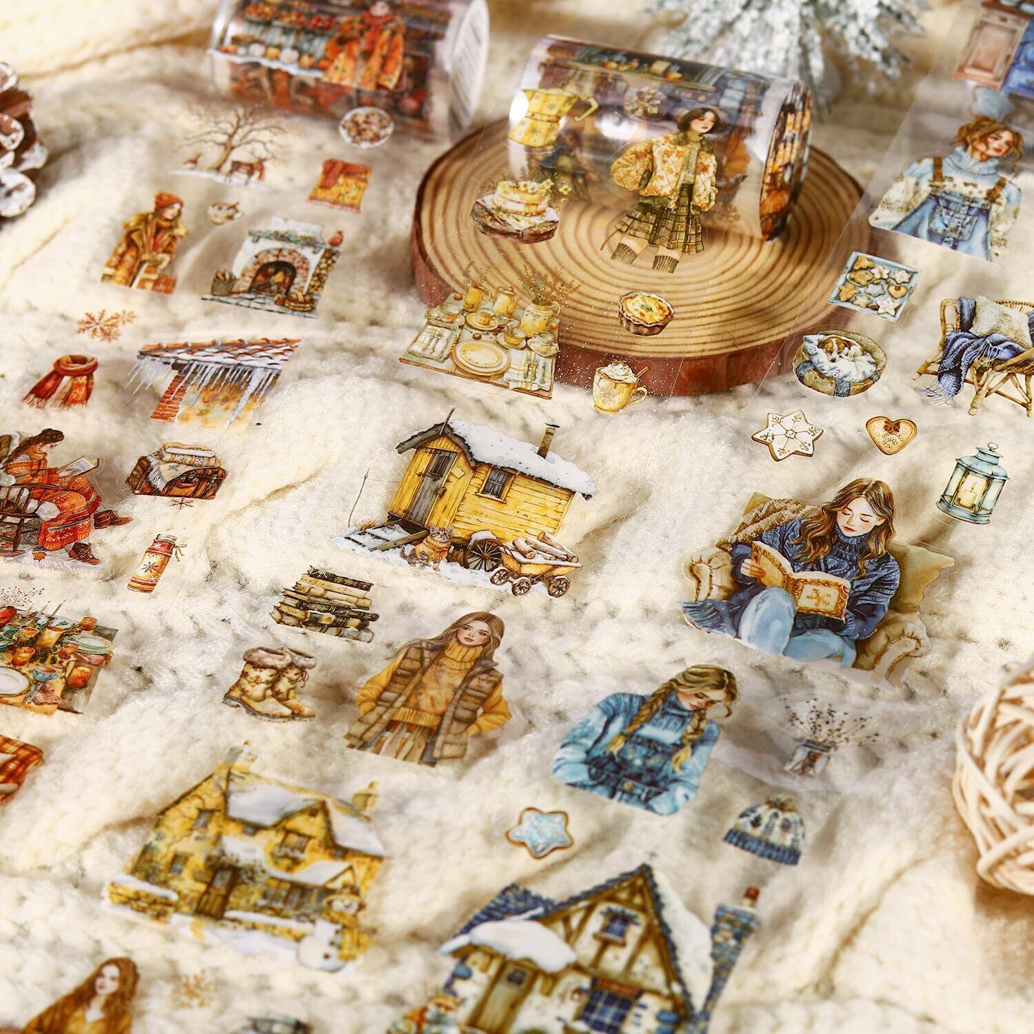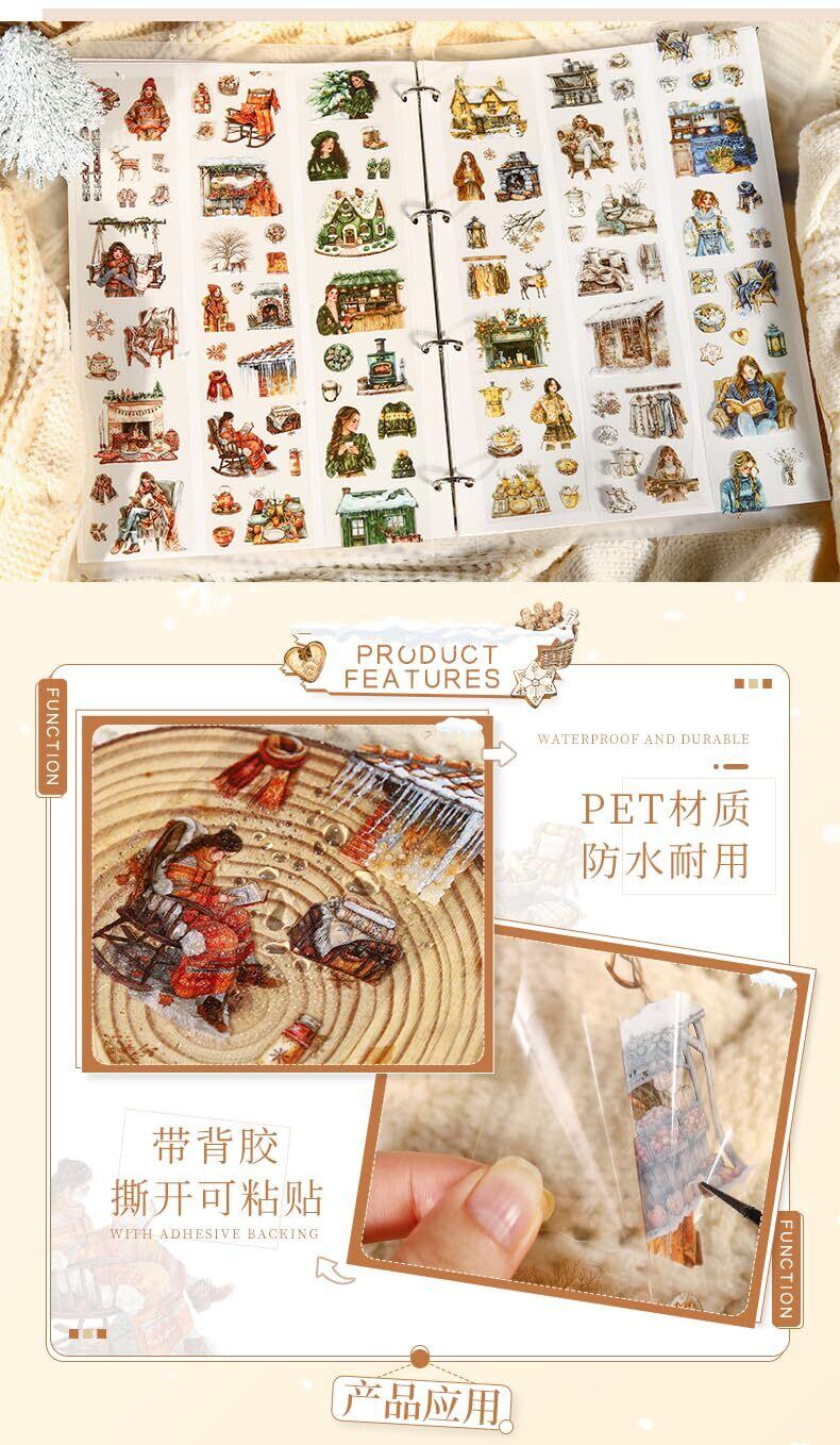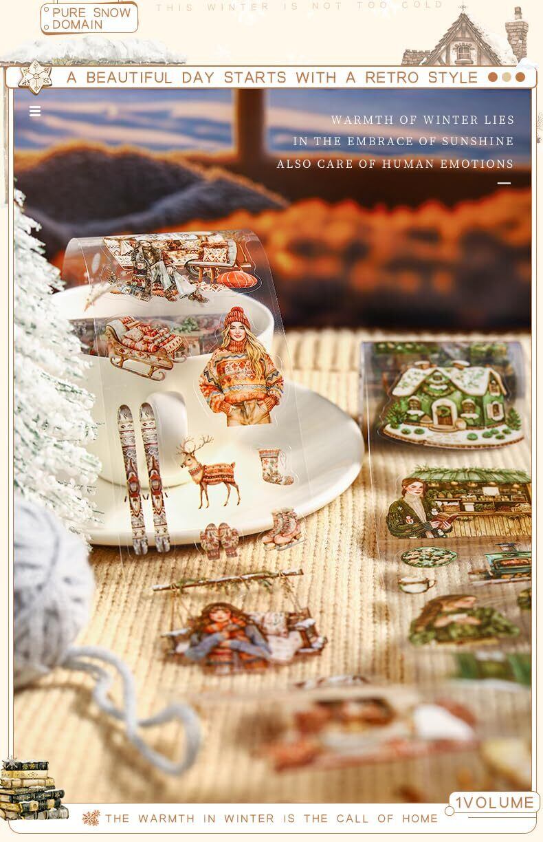 6個 マスキングテープ かわいいロレトロ冬の文学少女透明な耐水性 インク PET 粘着 テープ 広幅 DIY おしゃれ マステ シール (dongrilidewennuan)