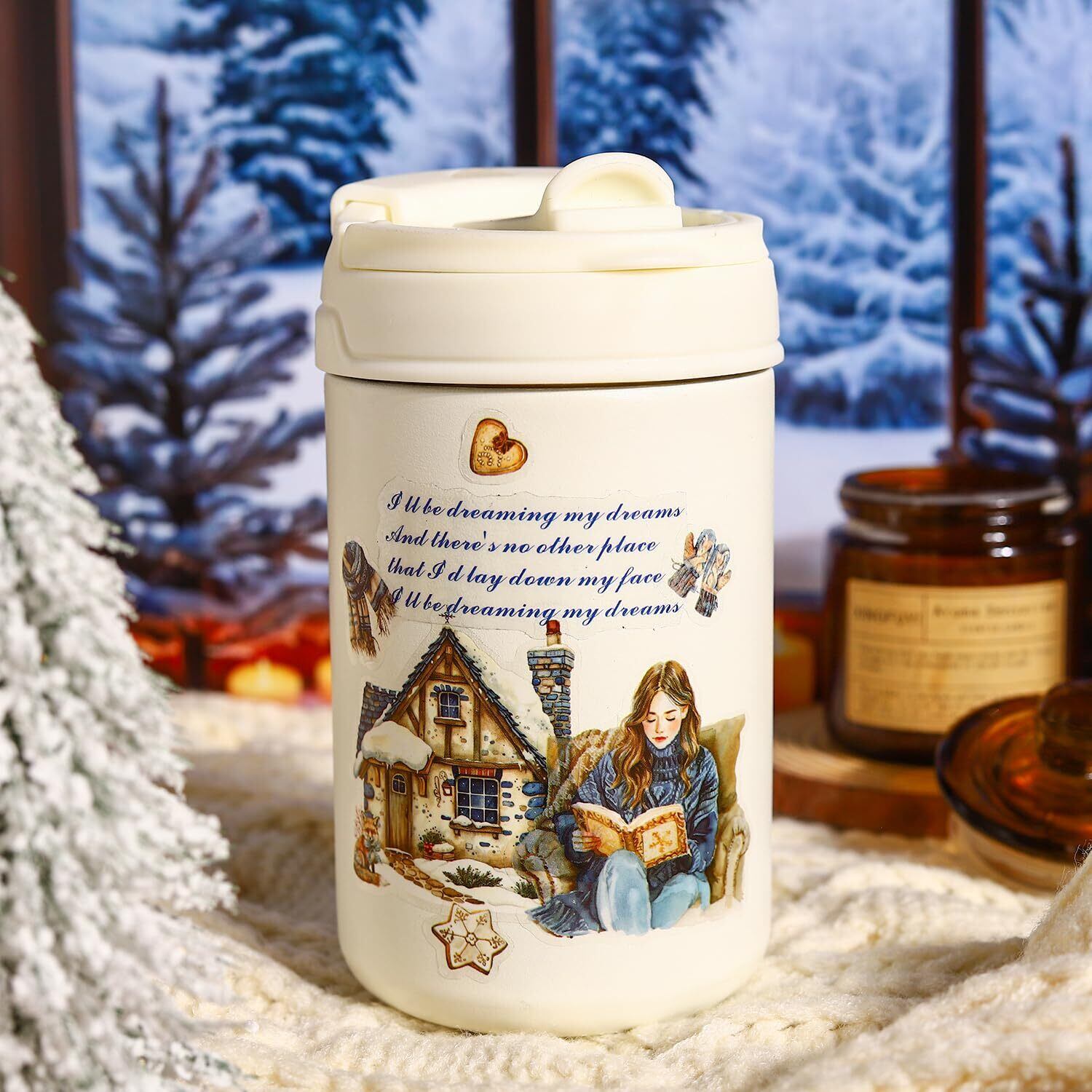 38cm/loop,ペットの透明な耐水性 インク,レトロ冬の文学少女