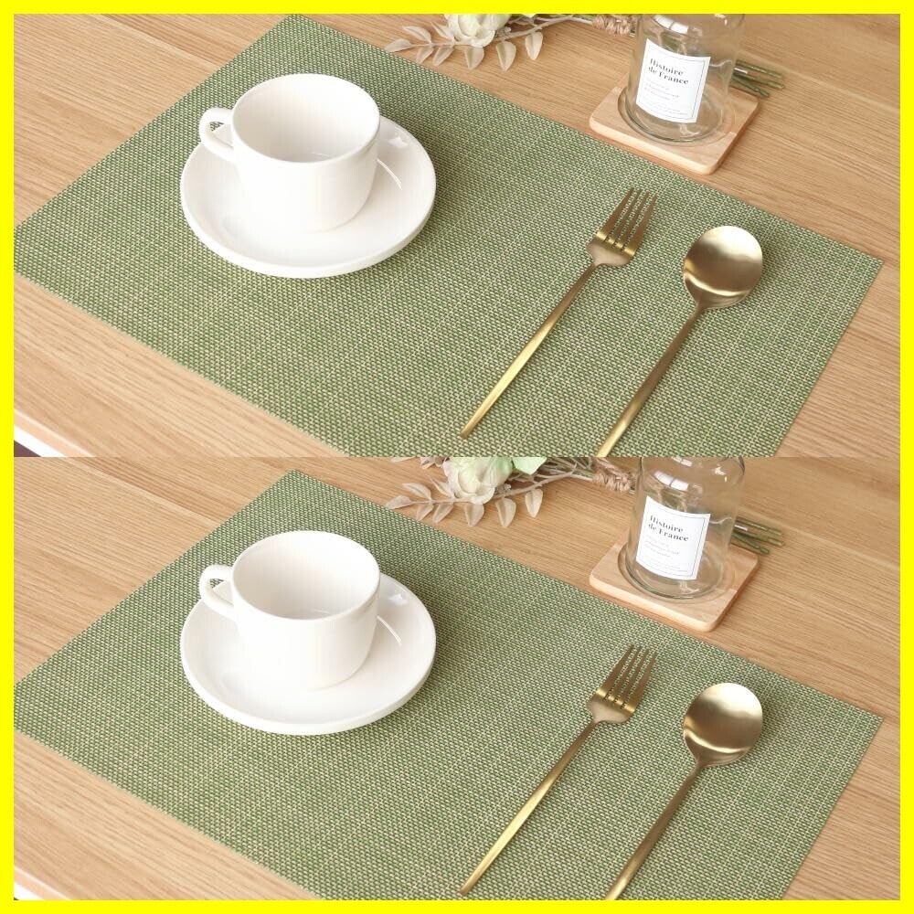 [HAPPY SINGU RABO] ランチョンマット 【スタイリッシュで高機能】 北欧 和 モダン PVC 防水 撥水 防油 防滑り 30×45cm お手入れ簡単 丸洗いOK (グリーン 2枚組)