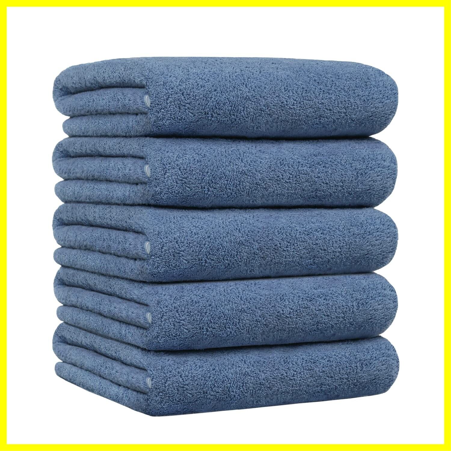 バスタオル マイクロファイバー ホテル仕様 大判 約60X120cm ふわふわ 柔らかい 瞬間吸水 速乾 抗菌 防臭 5枚セット タオル (ブルー)