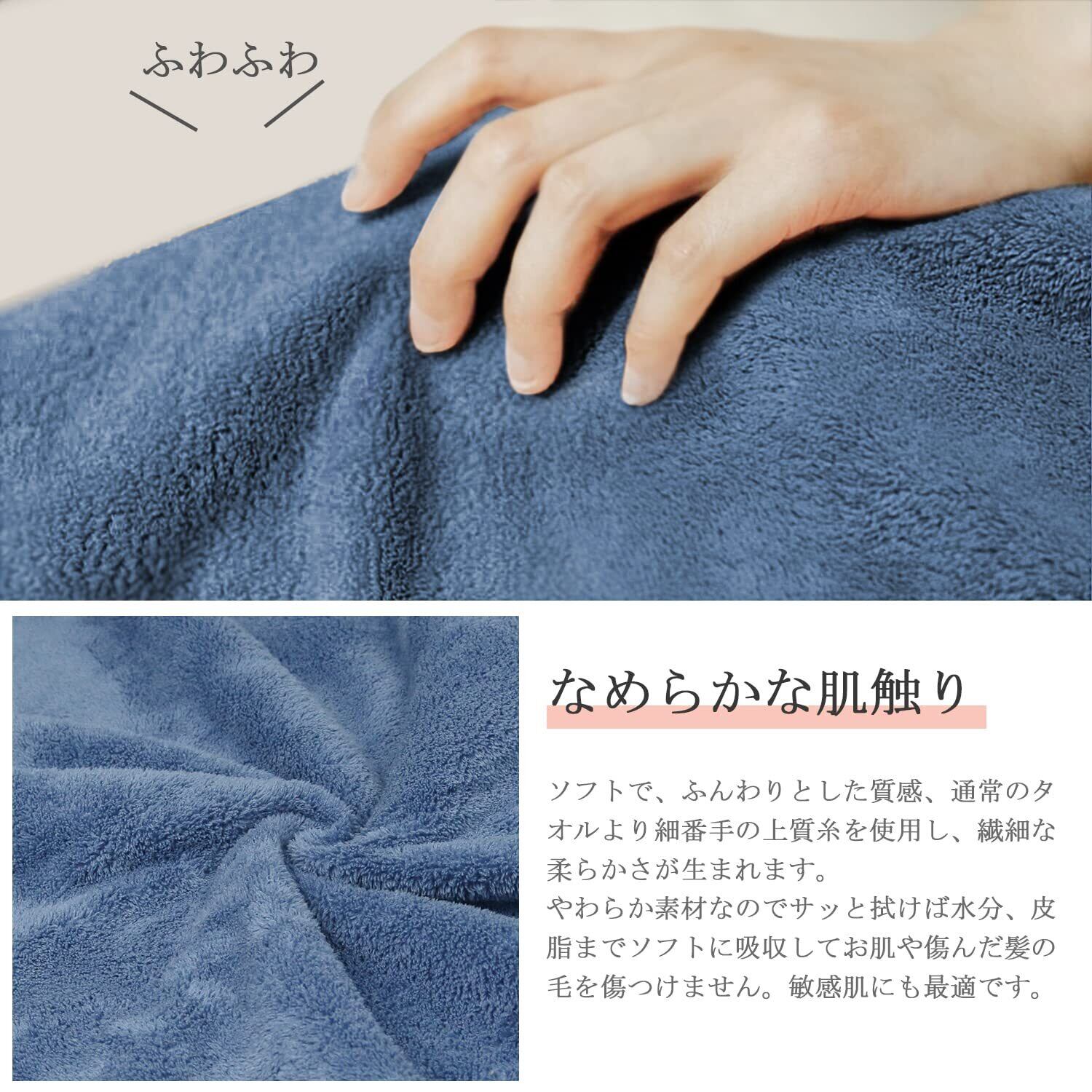 【ふわふわと柔らかい】通常のタオルより細番手の上質マイクロファイバーを採用し、ふわふわとしたやわらかい肌触りに仕上げました。低摩擦でお肌を優しく包み込んでくれます。肌や髪の傷みが気になる人や敏感肌の方や赤ちゃんにも最適です。