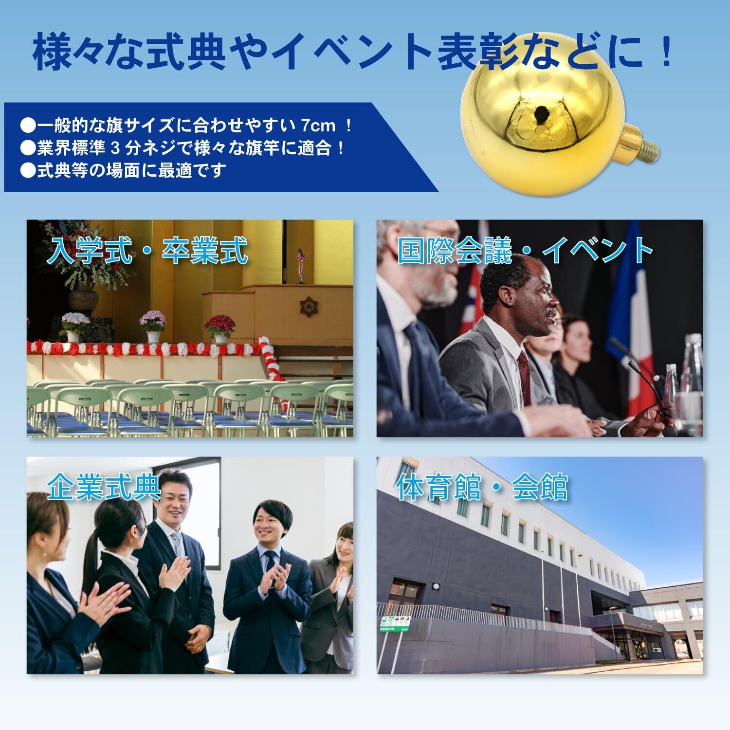 取付:ネジ式 直径は旗竿の標準的な規格の3分ネジ(直径約9.5mm)です。