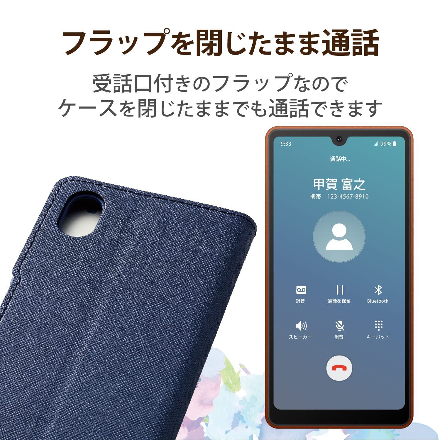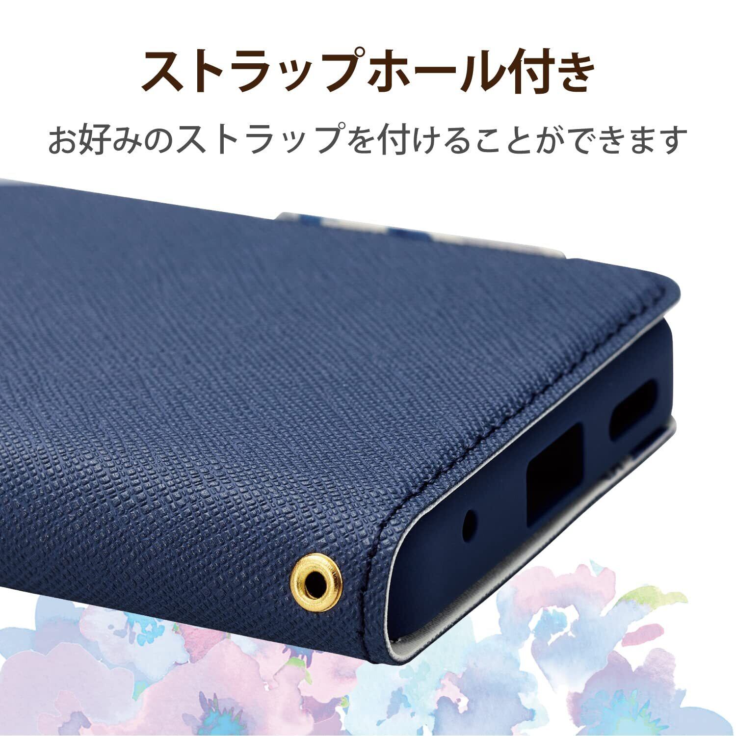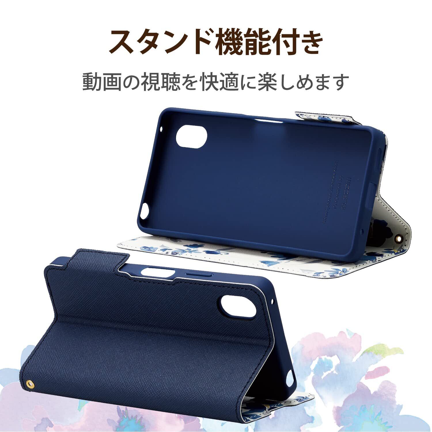 エレコム Xperia Ace III (SO-53C / SOG08) ケース カバー レザー 手帳型 マグネット付きフラップ 花柄 (ケース内側) 耐衝撃 超軽量 薄型 ストラップホール付 ネイビー PM-X223PLFUJNV